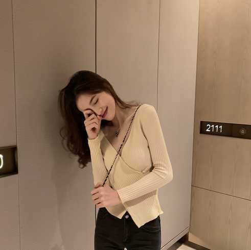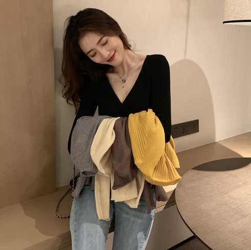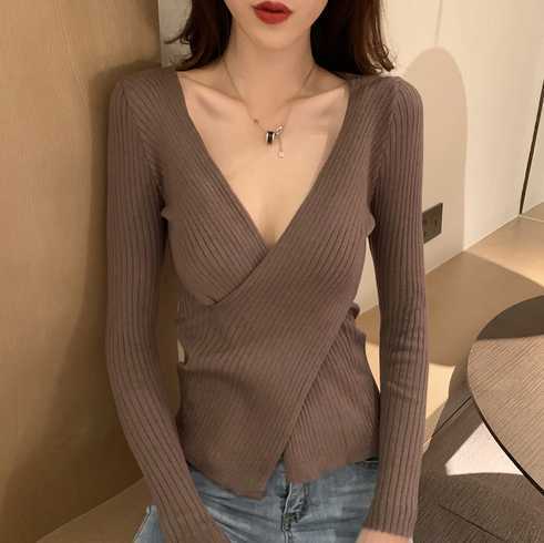 《入荷待ち》クロスVネック リブ セーター カットソー ニット 長袖 Vネック セーター プルオーバー セクシー スタイリッシュ スリム デート エレガント きれいめ お呼ばれ 春 秋 レディース 春2020