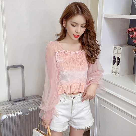 《入荷待ち》 全2色 レディース トップス シフォンブラウス フリル チュール プチプラ 春 夏 桃 白 透け感 可愛い フェミニン ガーリー ゆるふわ パステルカラー お洒落 お出かけ デイリーコーデ デート ショッピング 合コン 飲み会 女子会 トレ定 春2020 夏2020