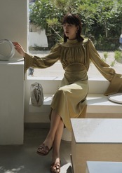 引き続きトレンドの上品なくすみカラーのワンピースは