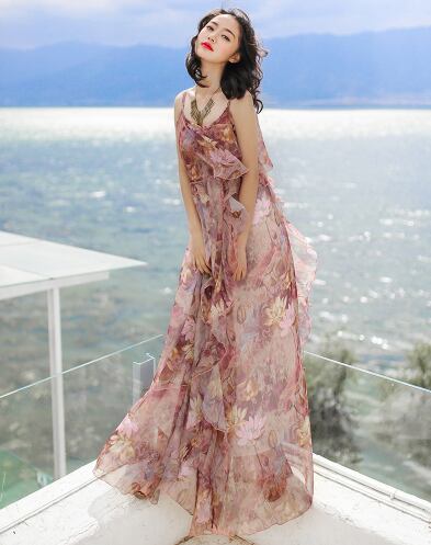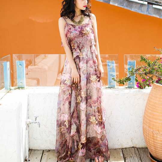 全2色 レディース ワンピース ドレスワンピ ロング丈 マキシ丈 キャミソール フレア 透け感 花柄 フラワー 春 夏 大人かわいい お洒落 きれいめ エレガント 20代 30代 デイリーコーデ お出かけ 普段着 リゾートスタイル ビーチ 海 海水浴 プール 女子旅 夏休み お呼ばれ 夏2020 トレ定