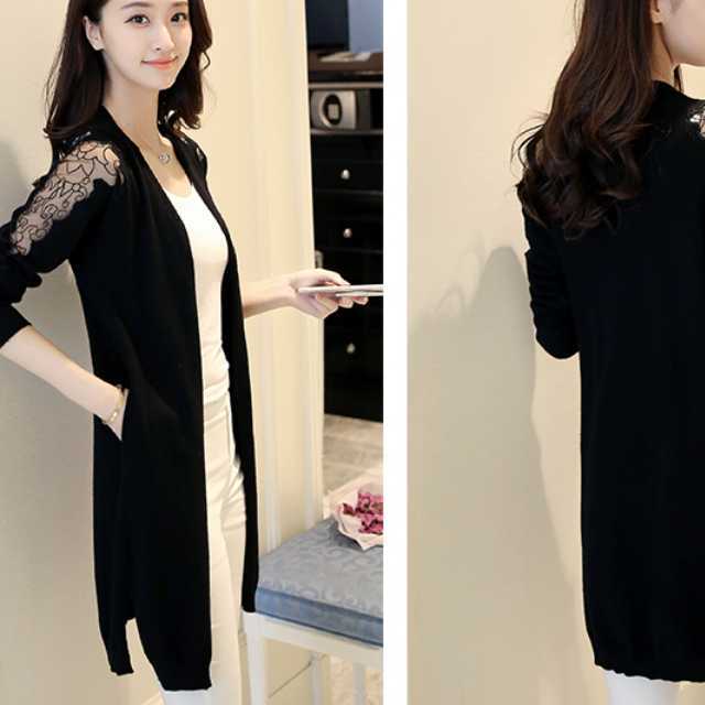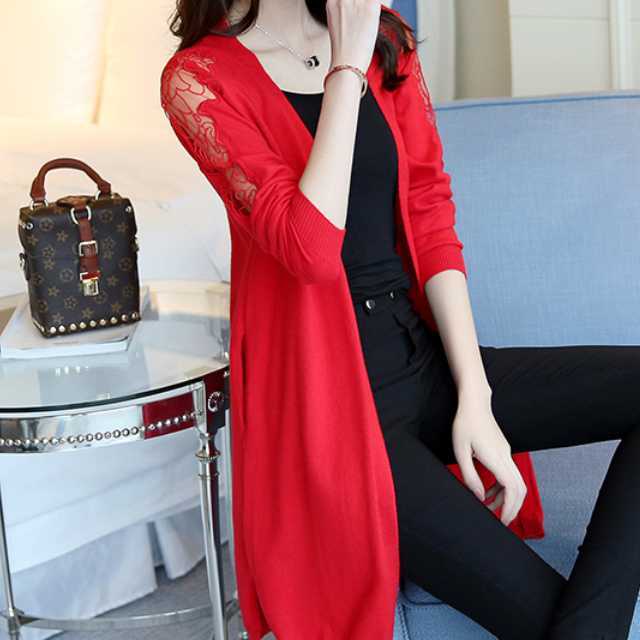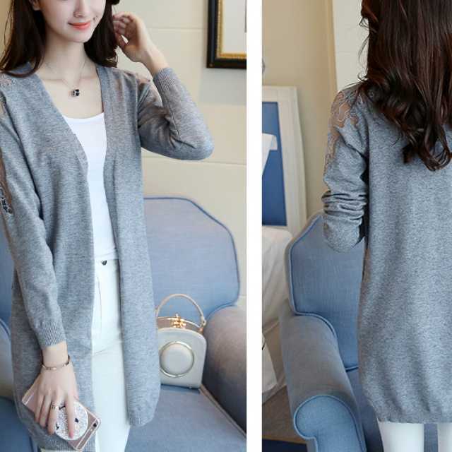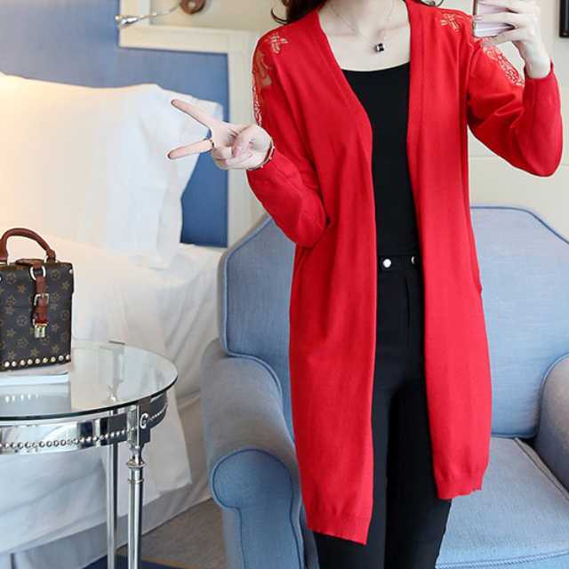 全3色 薄手 ロング ニットカーディガン 肩透け シースルー 刺繍 ロング丈 体型カバー スリット ポケット付き 長袖 セクシー フェミニン レース ショール きれいめ 上品 無地 シンプルデート お出かけ 女子会 通勤 春 レディース 春2020 夏2020 トレ定 上20 30普 式30