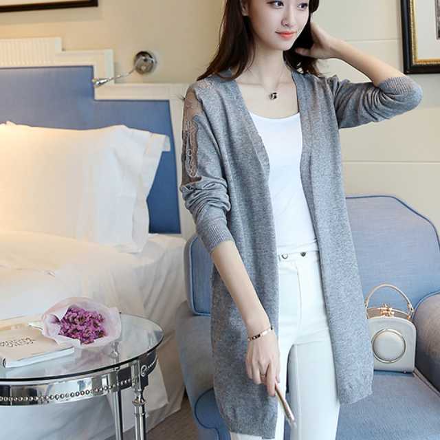 肩の透け感がおしゃれなロング丈のニットカーディガン。