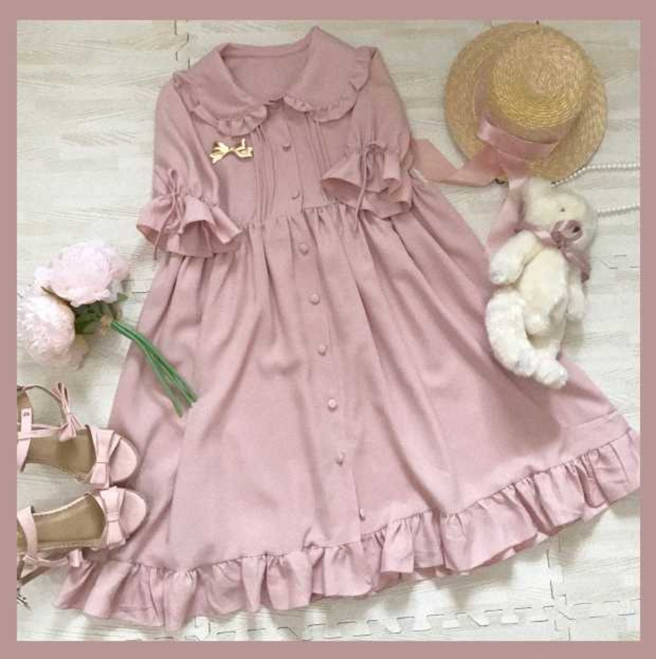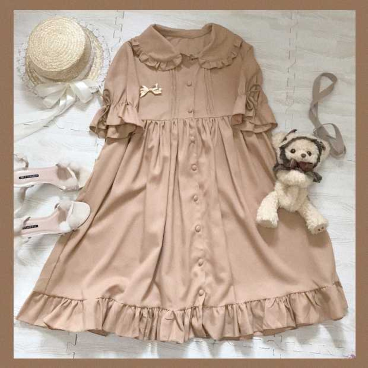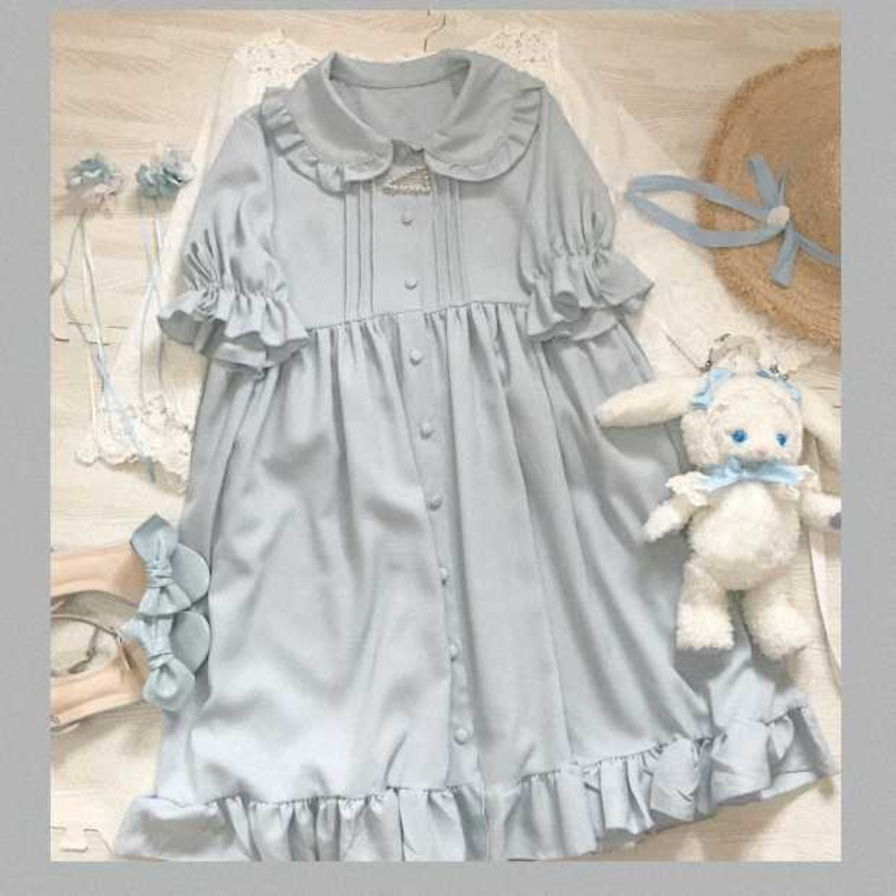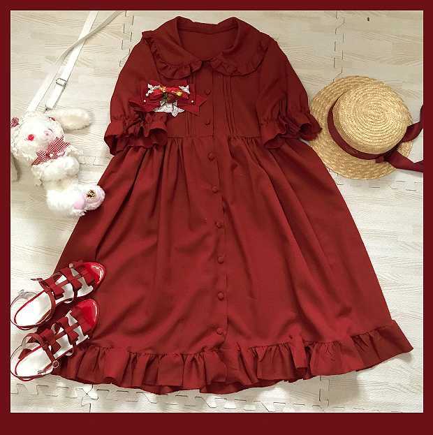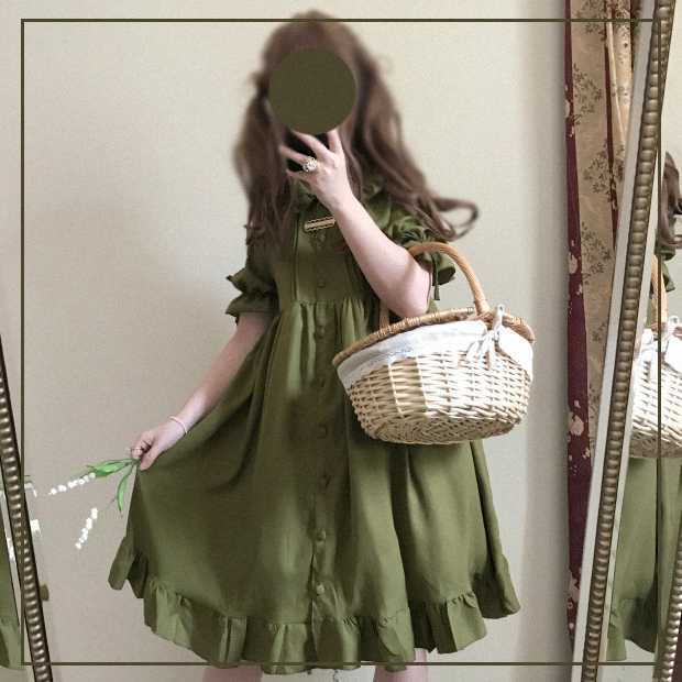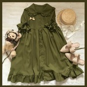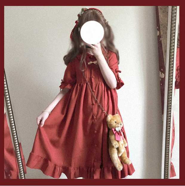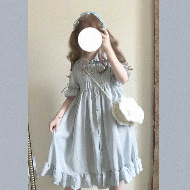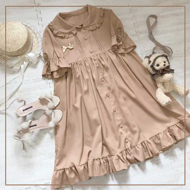 フリルたっぷり、タックが入ったレトロなロリータワンピース。
