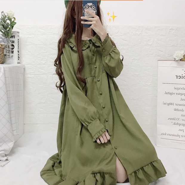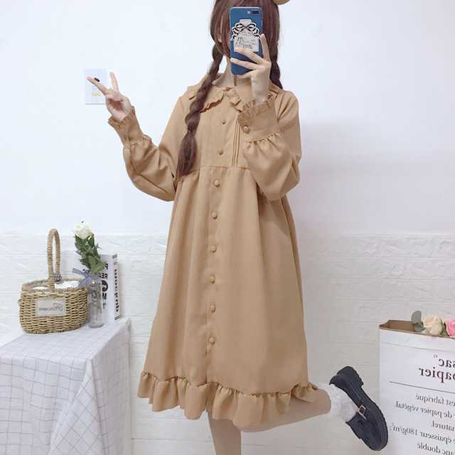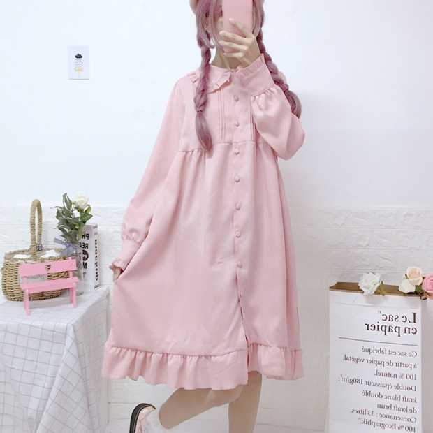 甘ロリ、姫系のゆめかわ長袖シャツワンピース。