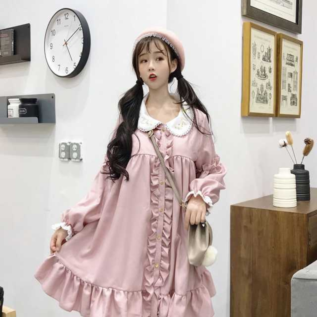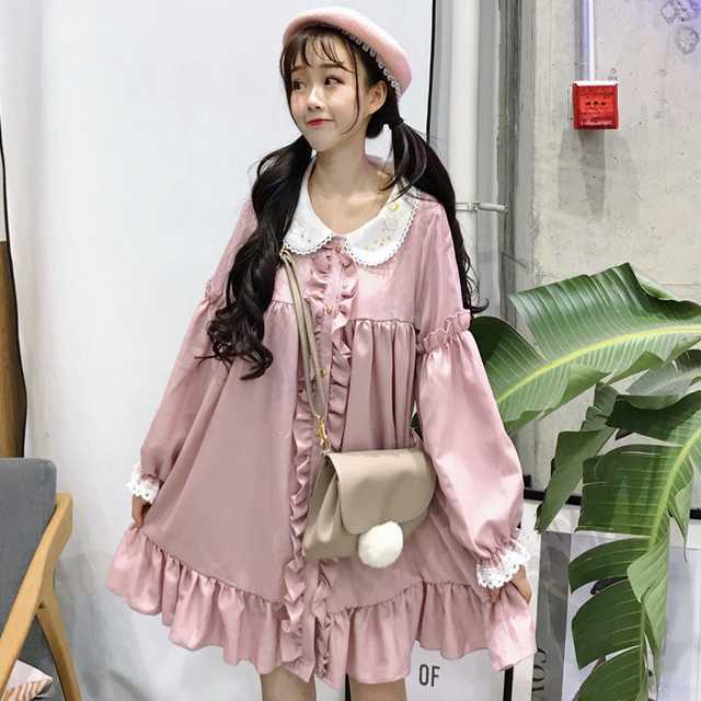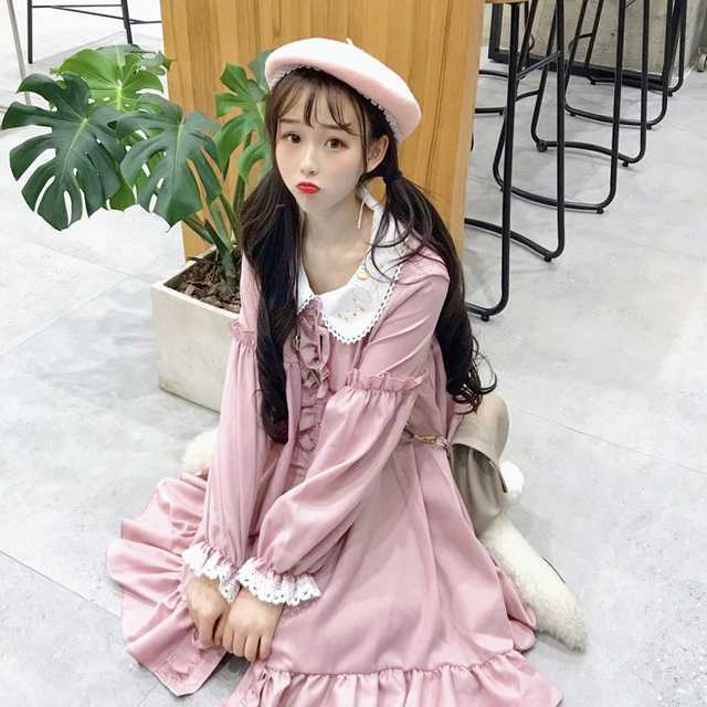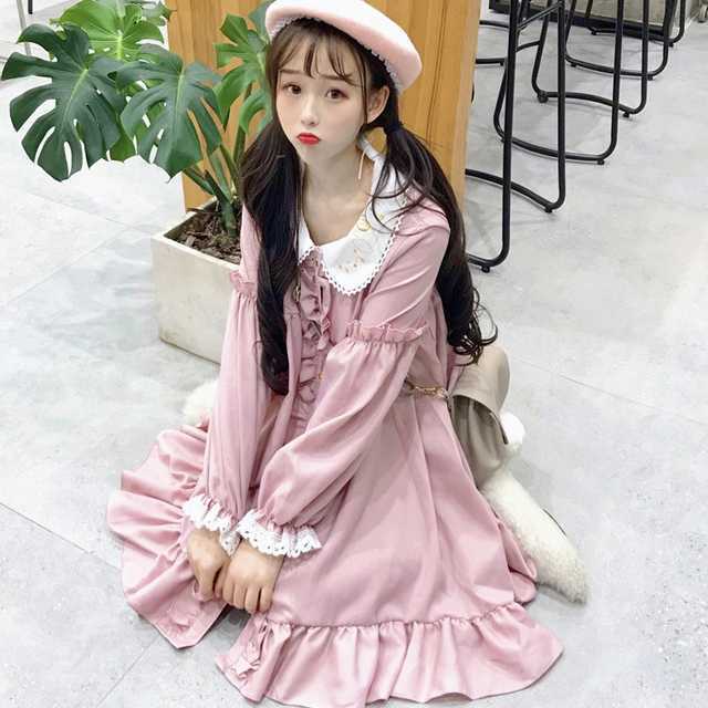 ゆめかわガーリーな長袖シャツロリータワンピース。