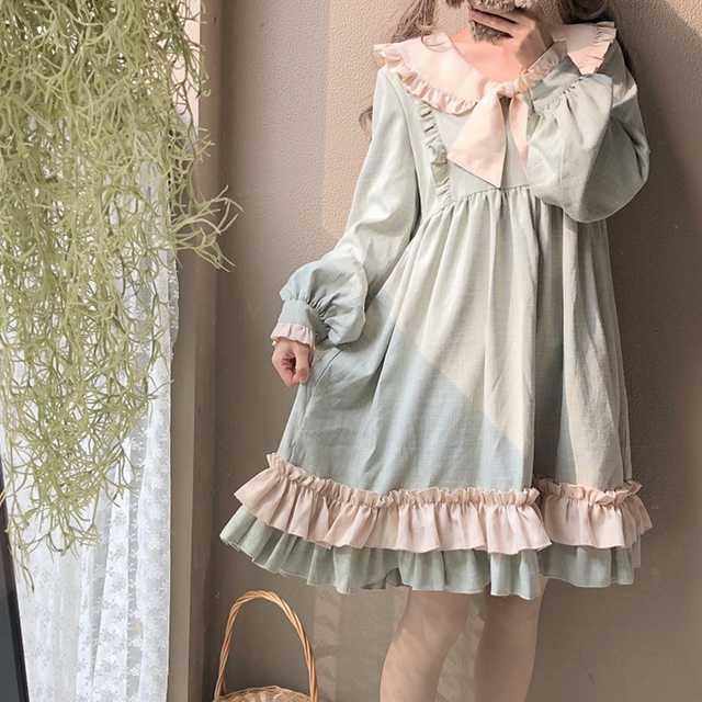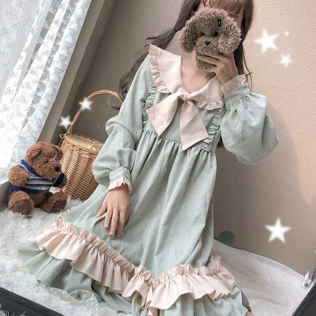 《入荷待ち》パステル ロリータ 森ガール セーラーワンピース ロリータドレス セーラーカラードールワンピース 袖コンシャス 長袖 ハイウエスト ミニ丈 タック ワンピース フリル 無地 リボン 甘ロリ ロリータファッション ロリィタ ゆめかわ 病みかわ パステル ゴスロリ ゴシック レディース 春2020 夏2020 夢かわ