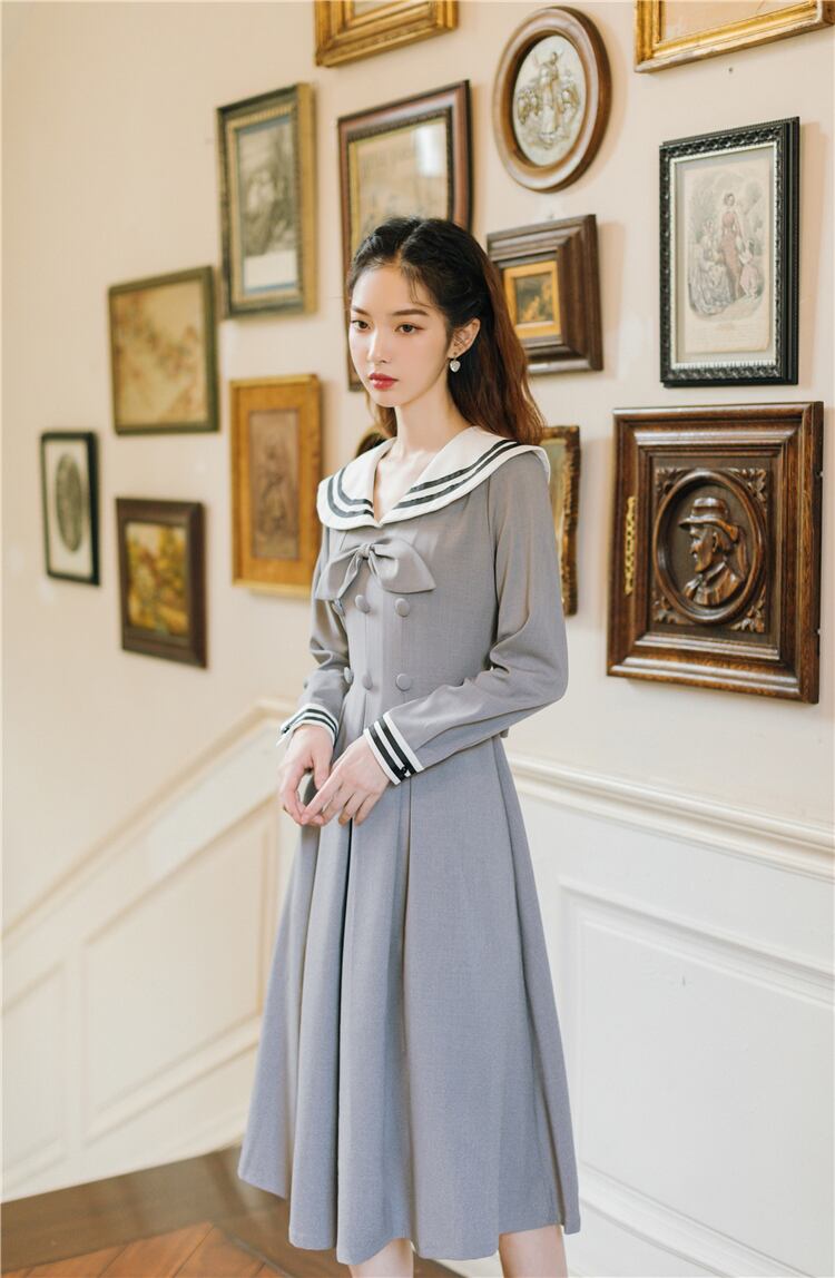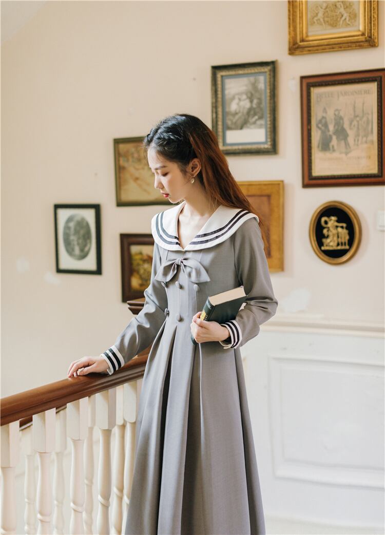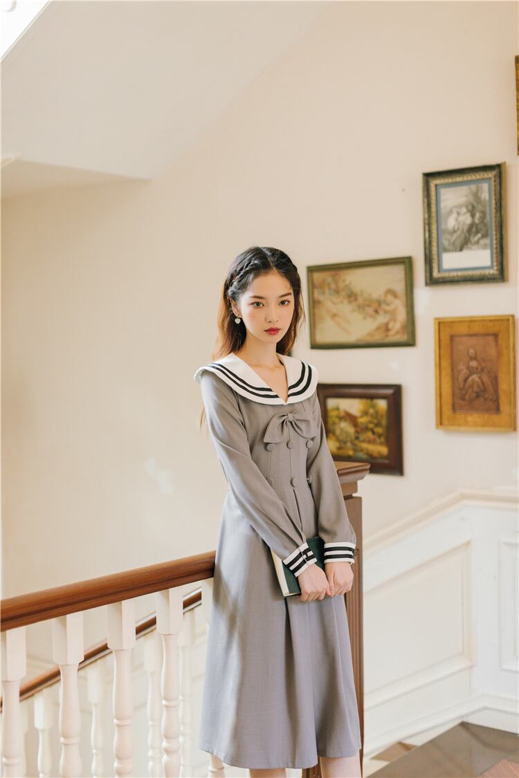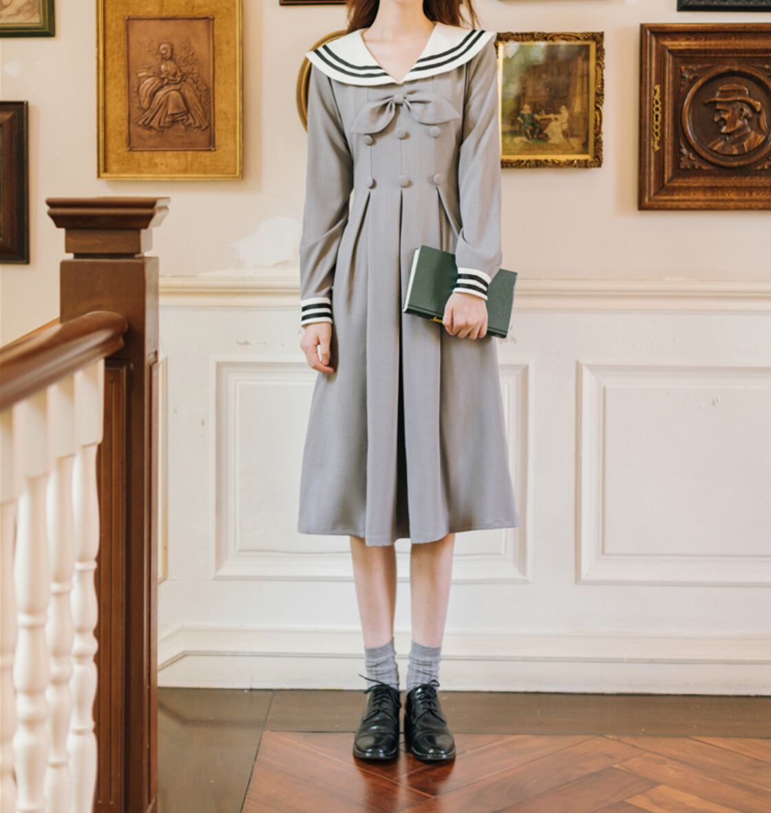 《入荷待ち》ワンピース セーラー ミモレ丈 長袖 ヴィンテージ 清楚 ゆるふわ 女の子 フェミニン ロリィタ ロリータ ゆめかわ 病みかわ パステル ゴスロリ ゴシック クラシカル クラロリ レトロ 春2020 夏2020 夢かわ