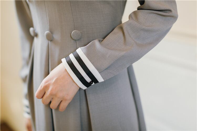 ダブルラインが入った大きな襟は小顔効果もアップ。
