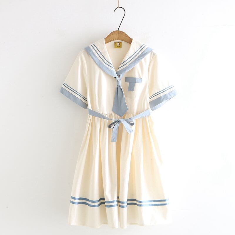 清楚で爽やかなブルーのセーラー風ワンピース♪