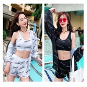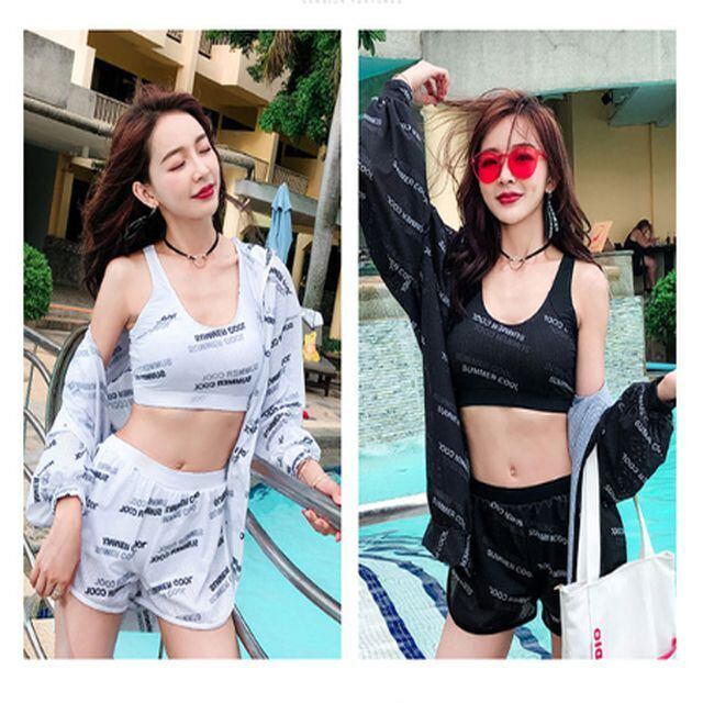 水着 3点セット ショートタンク ボクサーパンツ ラッシュガード タンキニ レタープリント ホワイト 白 ブラック 黒 レディース ボーイッシュ かっこいい クール 旅行 キャンプ レジャー 夏 セクシー 体型カバー