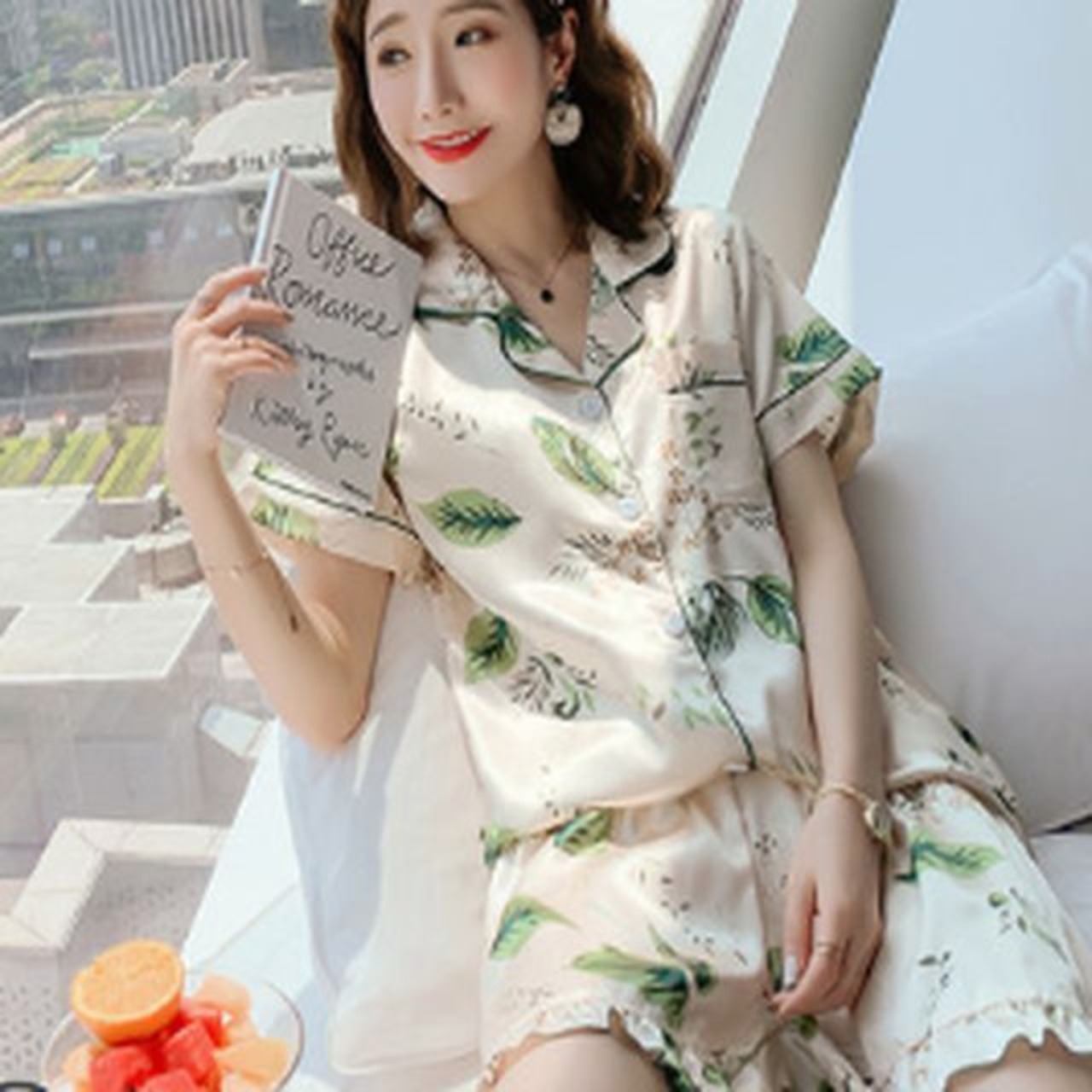 半袖 ツーピース 短パン パジャマ ルームウェア 柔らか 可愛い 春 夏 秋 Vネック 大人 女性 ボタニカル 部屋着 休日