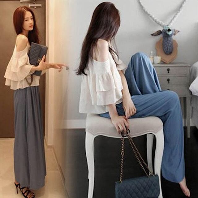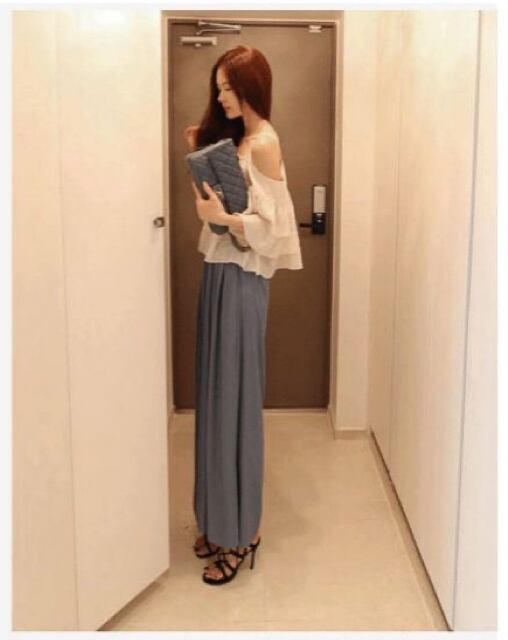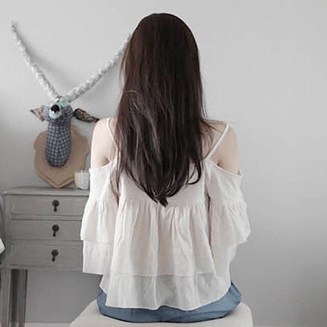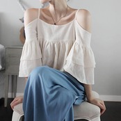 フリルが可愛いブラウスは二の腕をきゃしゃ見せしてくれます。
