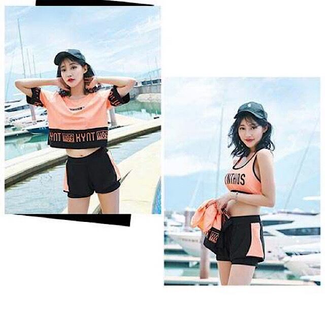 レディース 水着 3ピース タンキニ 10代 20代 海 プール ラッシュガード スポーティ 体型カバー