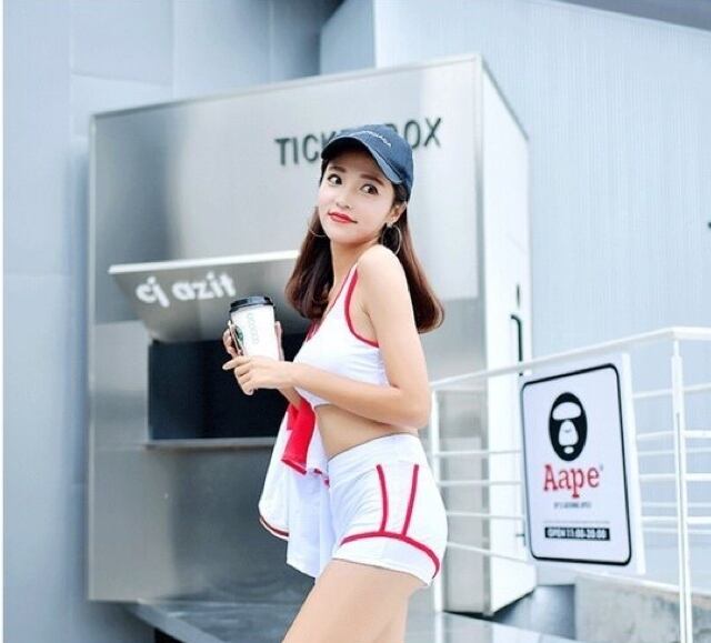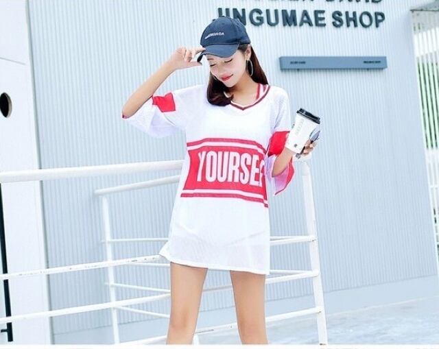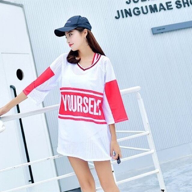 大きめラッシュガードとスポーツビキニの3点セットの水着です。