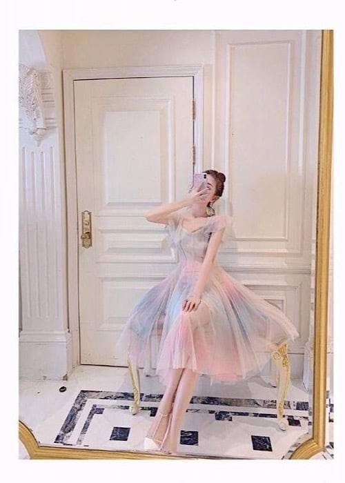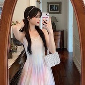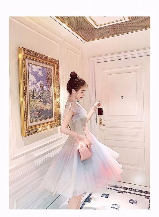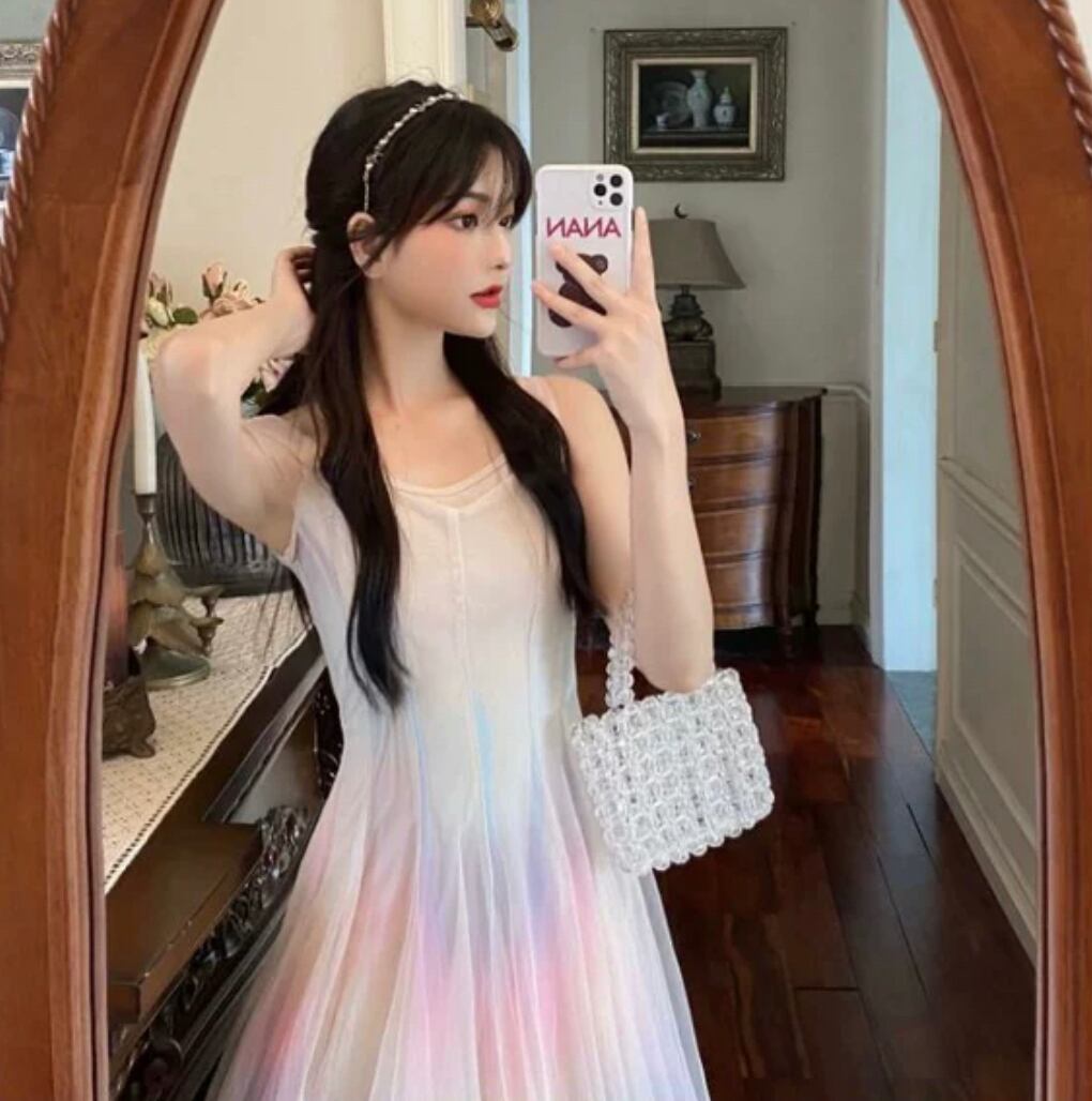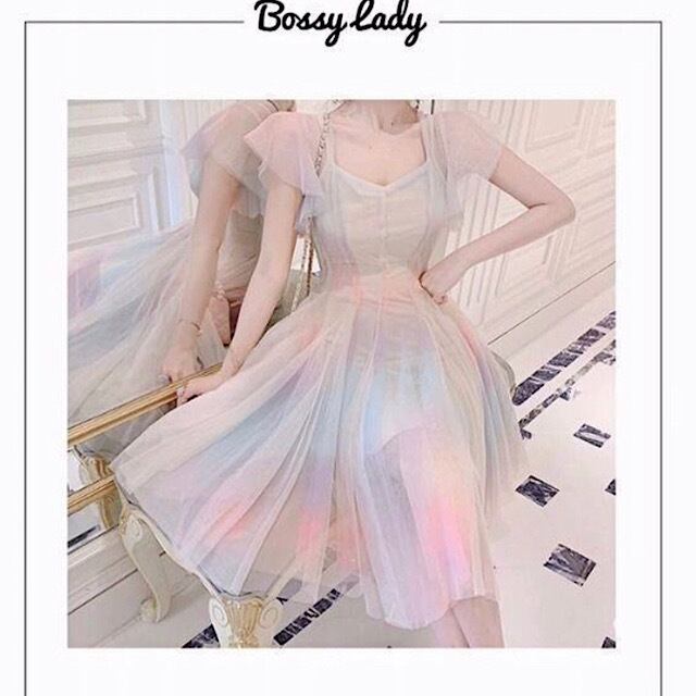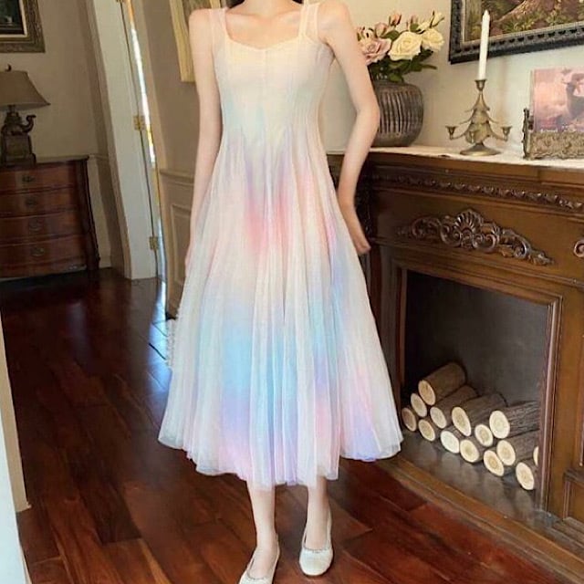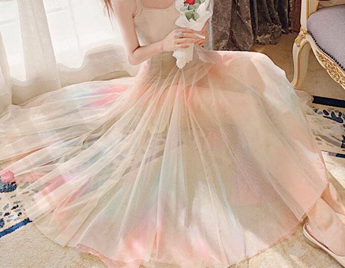 《入荷待ち》ワンピース タイダイ 人気 パステルカラー チュールドレス ゴージャス Aライン フレア チュールドレス 夏2020 夢かわ 夢ワンピ