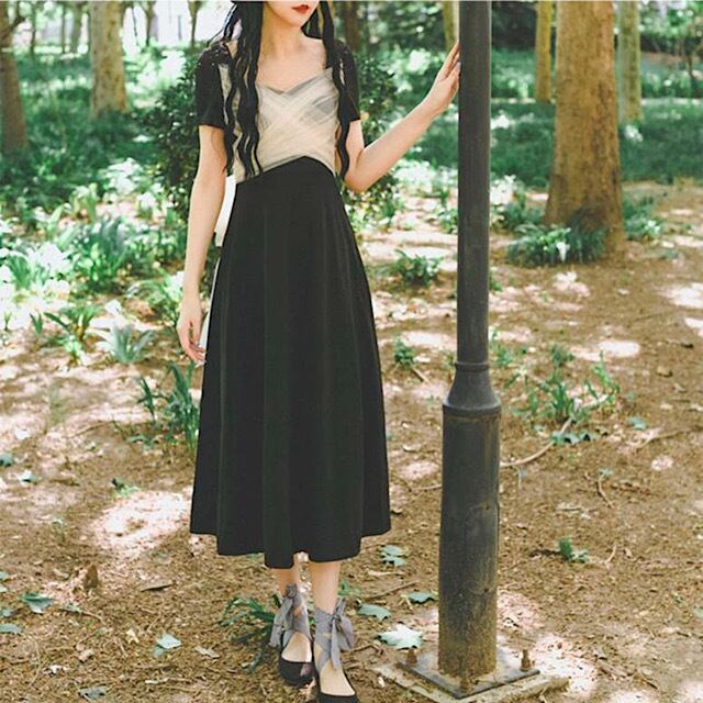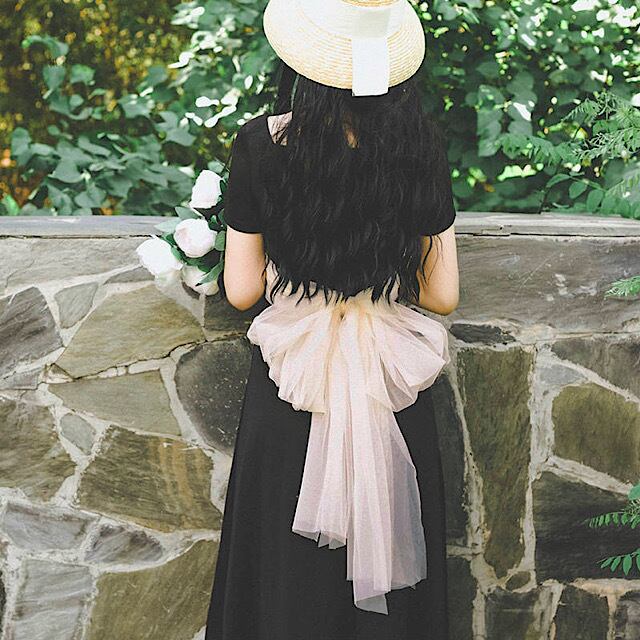 《入荷待ち》大人可愛い ハイウエスト バイカラー フェミニン Aライン シック バックリボン シフォン 無地 シンプル 透け感 バックコンシャス 夏2020 夢かわ 夢ワンピ