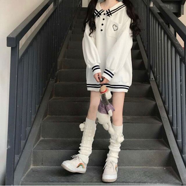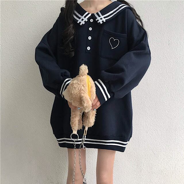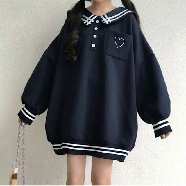 《入荷待ち》セーラー風 ロリィタ ワンピ 可愛い 長袖 森ガール ルーズサイズ 秋2020 夢かわ 夢ワンピ