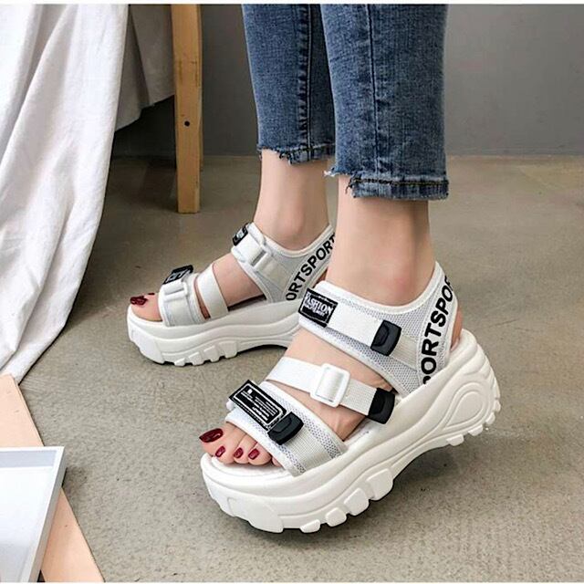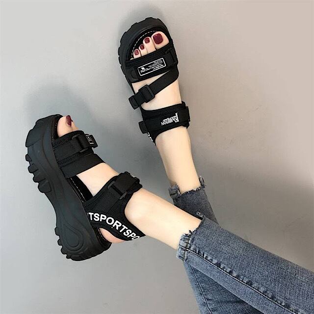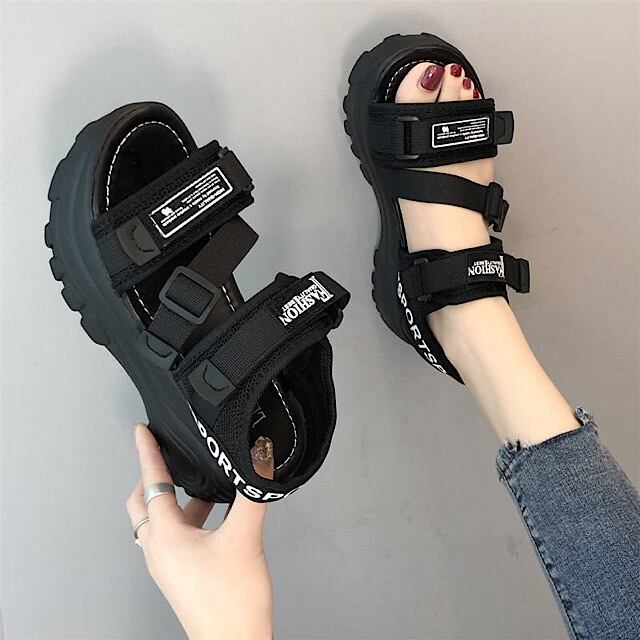 《入荷待ち》 レディース 厚底 スポーツサンダル 美脚効果 ウェッジソール サンダル カジュアル シンプル ゴツめ
