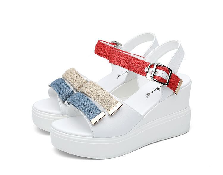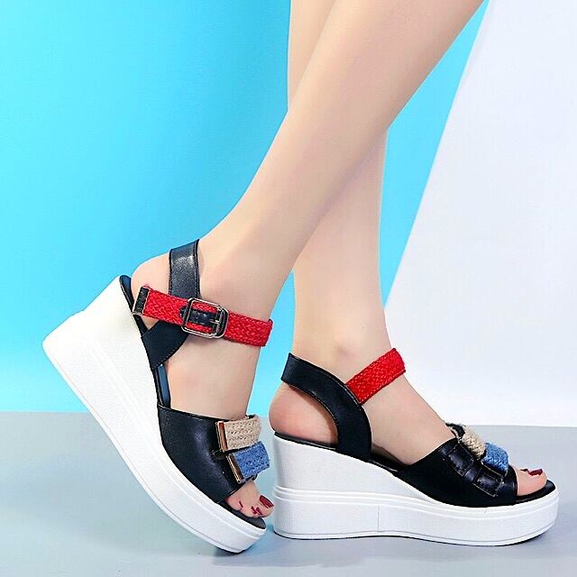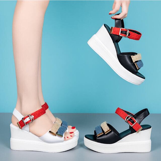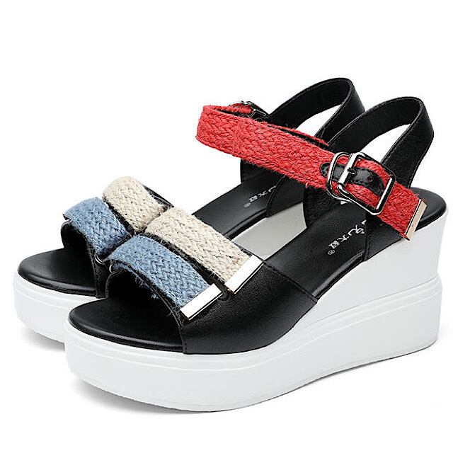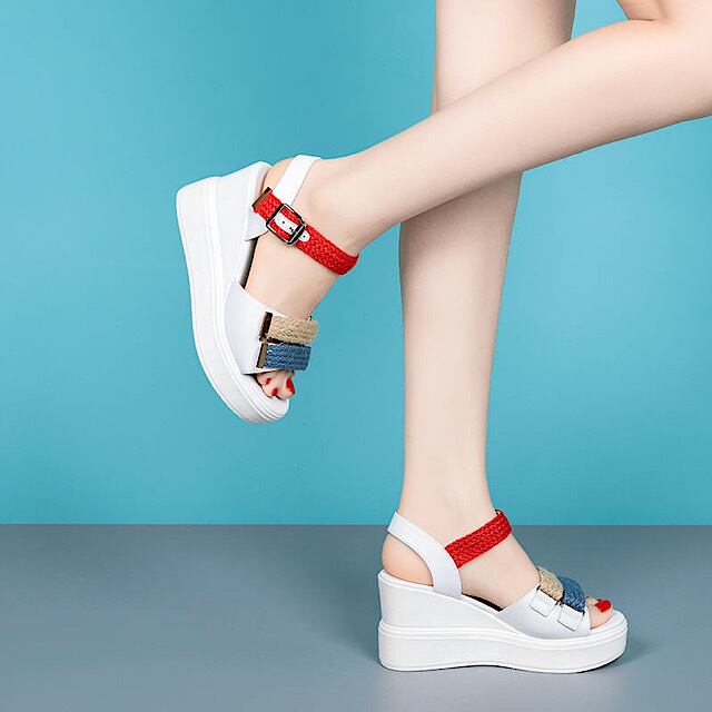 《入荷待ち》 ウェッジソール 厚底 履きやすい バイカラー アンクルベルト 大人可愛い キレイめ 夏 サンダル