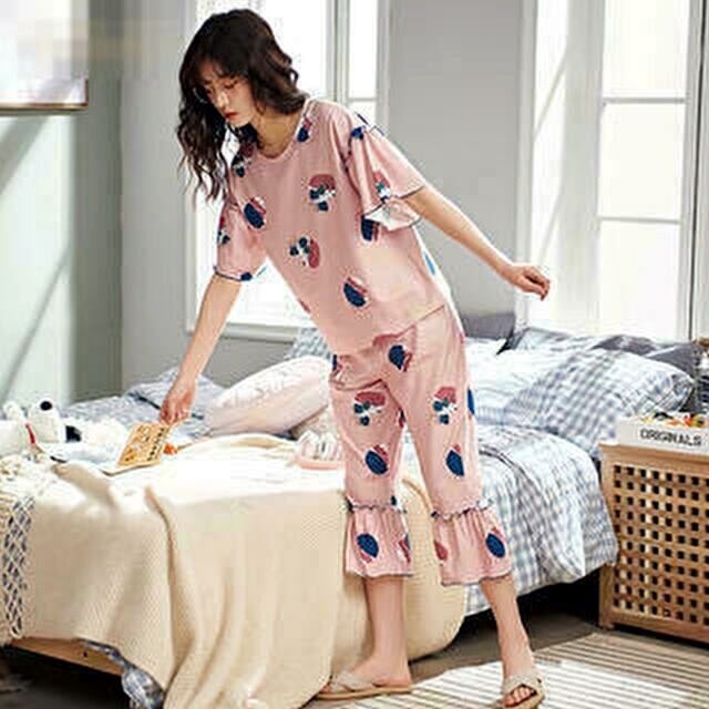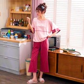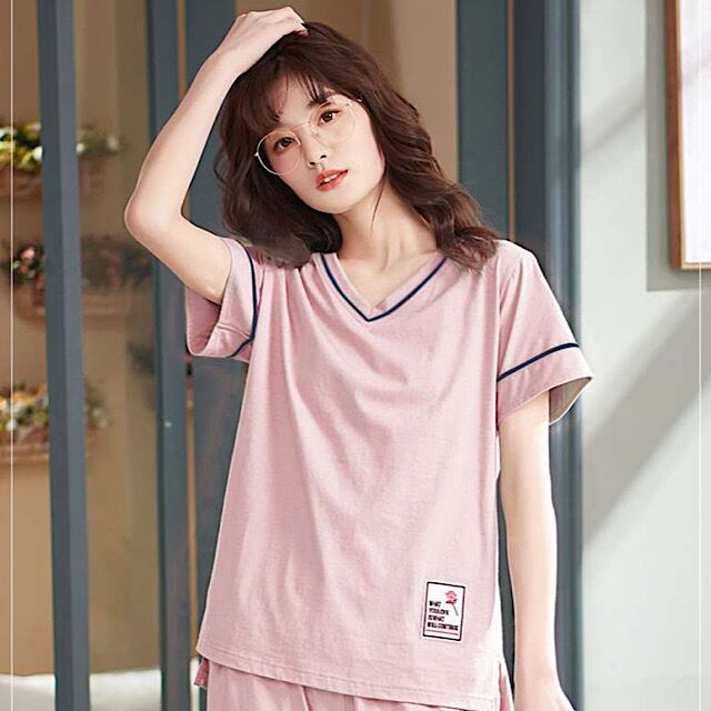 コットン レディース パジャマ ラウンドネック 無地 半袖 夏用 Roomwear