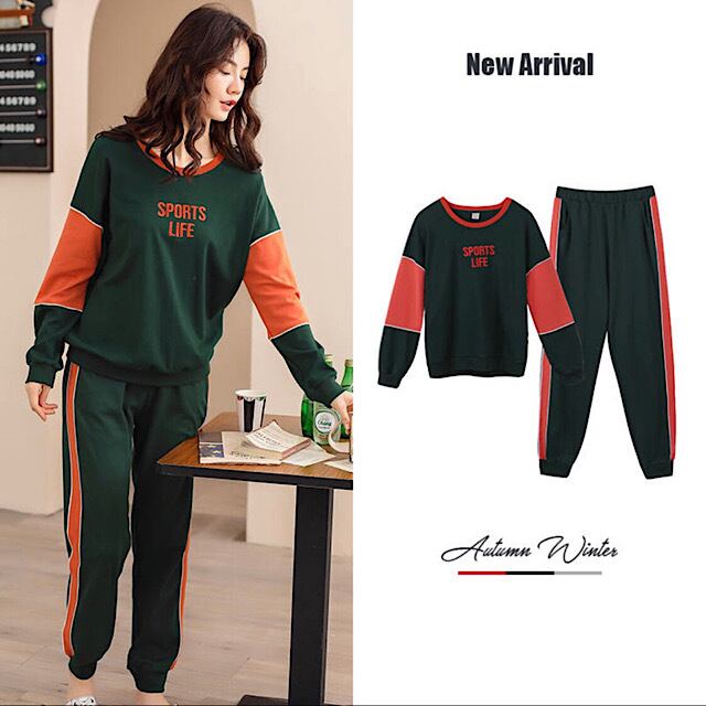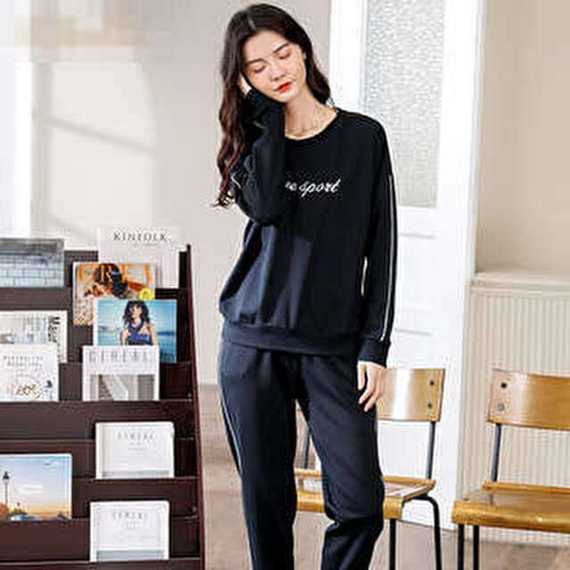 レディース コットン パジャマ Uネック 大人可愛い 長袖 秋冬用 部屋着 ルームウェア スウェット リラックス Roomwear