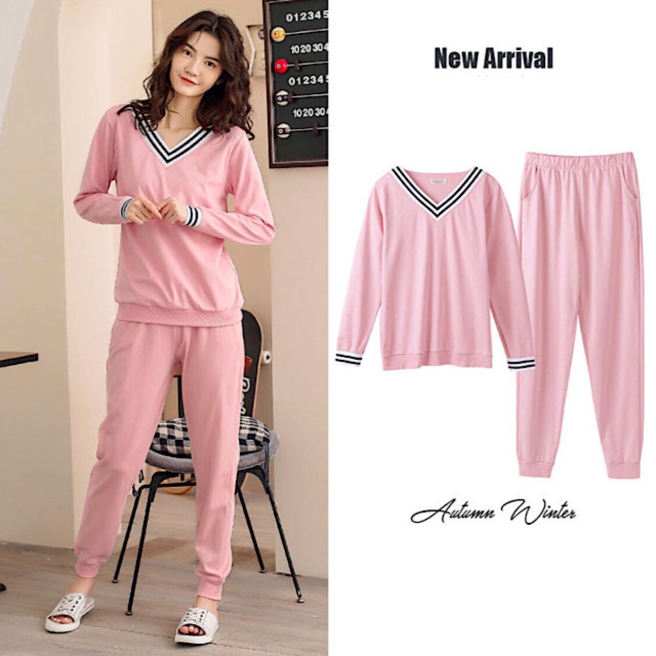 Uネックが可愛い長袖タイプのパジャマです。