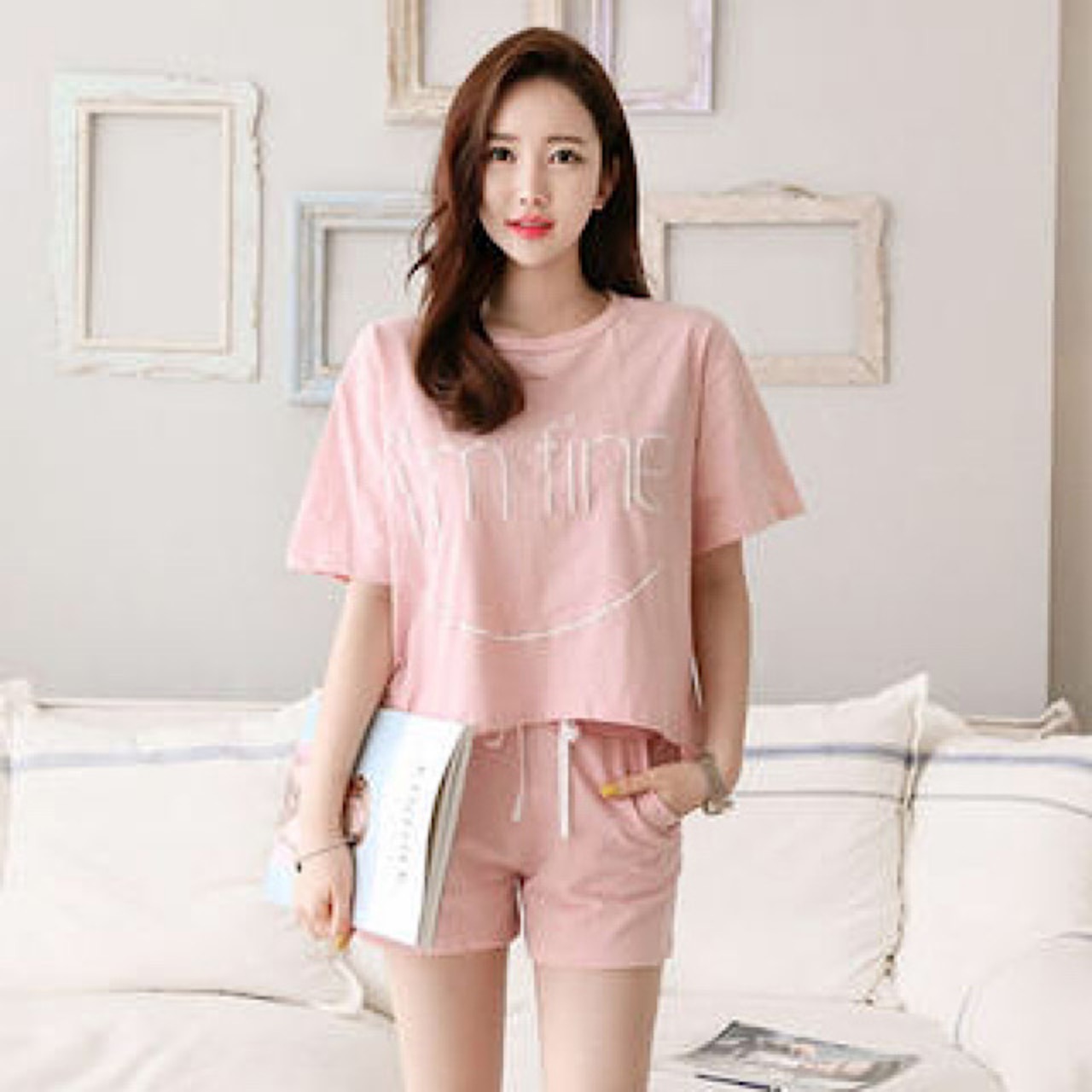 レディース 半袖 半ズボン シック 夏用 パジャマ ラウンドネック Roomwear