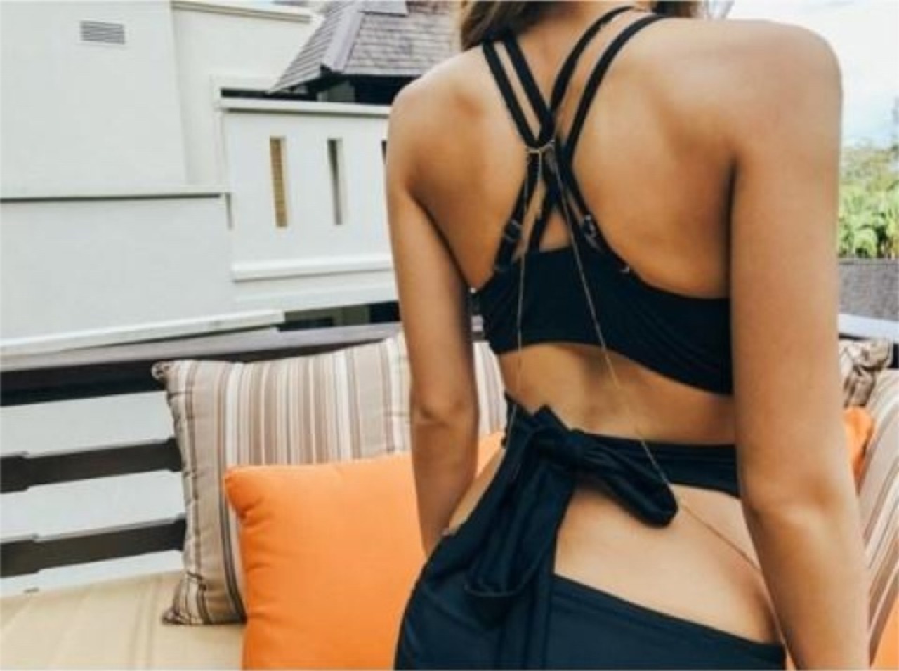 トップスはバストを包み込むようにホールドし、更にウエストストラップを括るので水着が落ちる心配もありません。