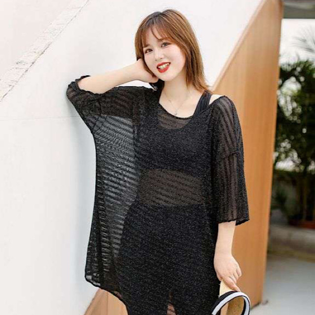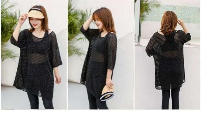 風に吹かれると存在感をUPさせる透け感のあるラッシュガードが大人可愛い。