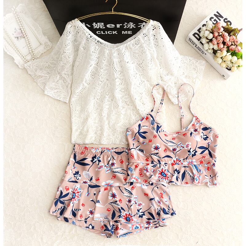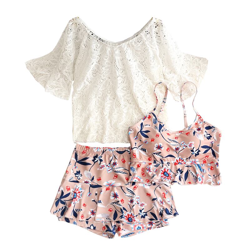 花柄の可愛い3点セットの水着です。