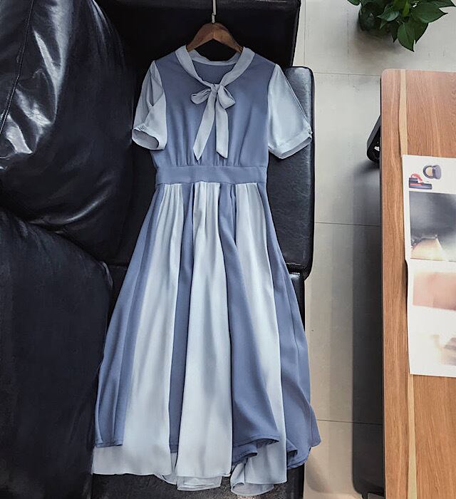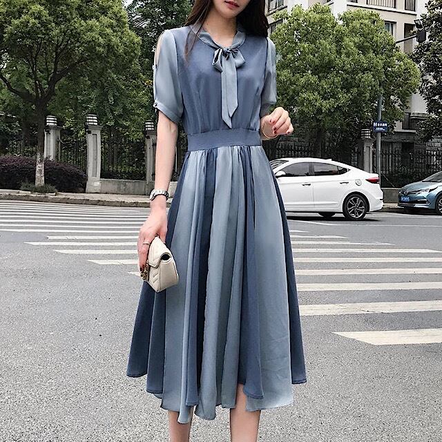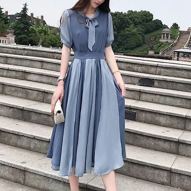 シックな色合いが大人可愛いバイカラーのワンピース。