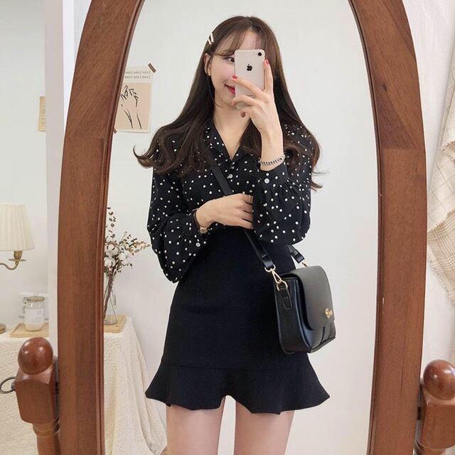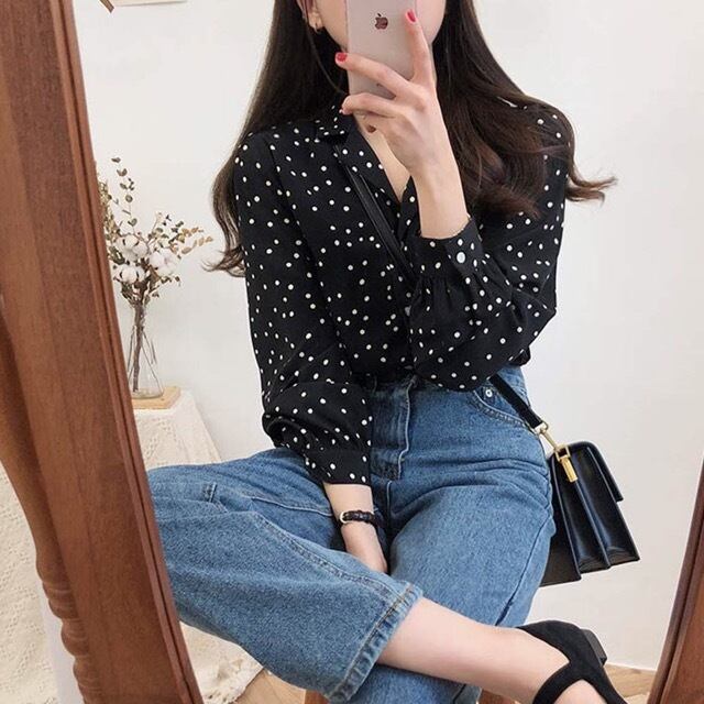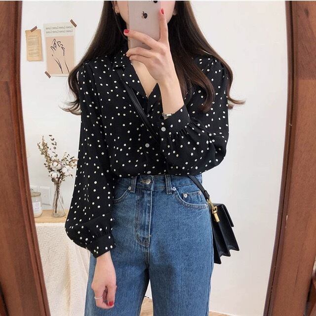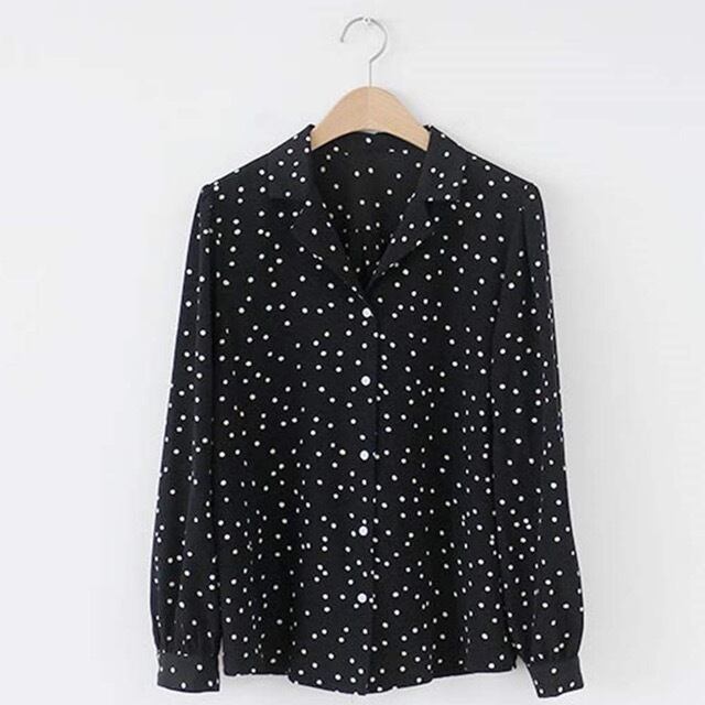 ドット柄が大人可愛い長袖ブラウスです。