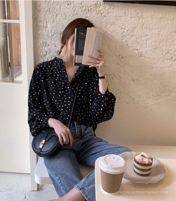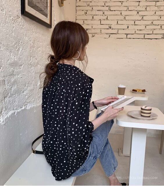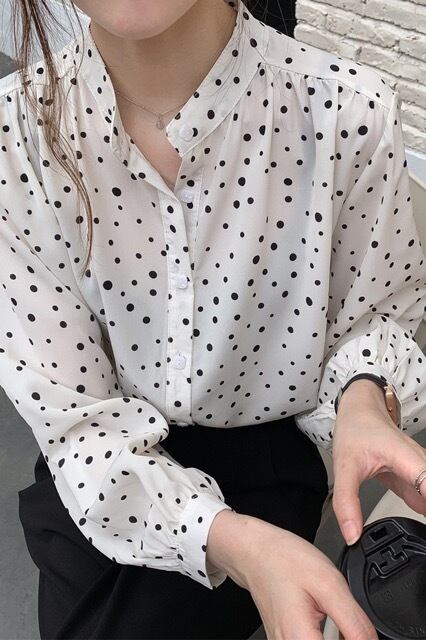 ドットが可愛い長袖ブラウスです。