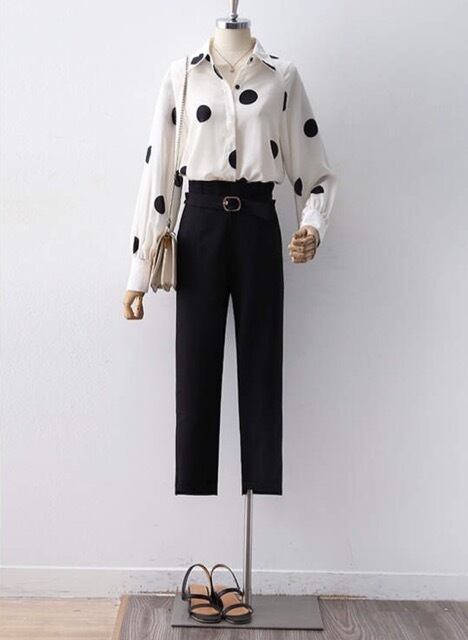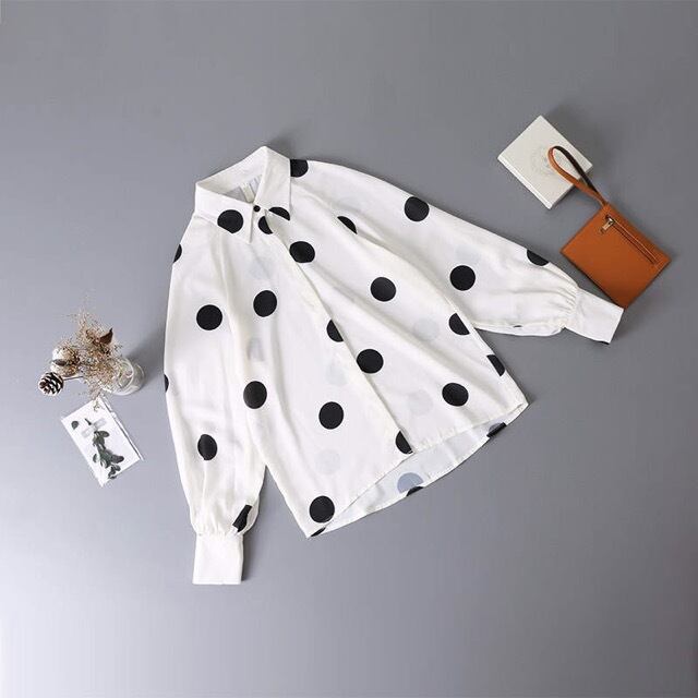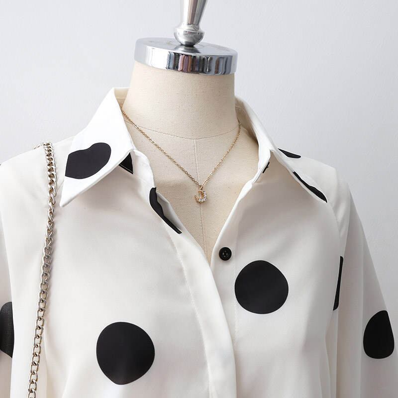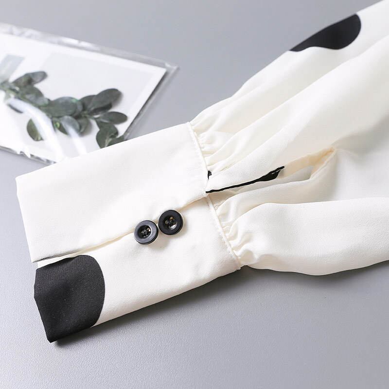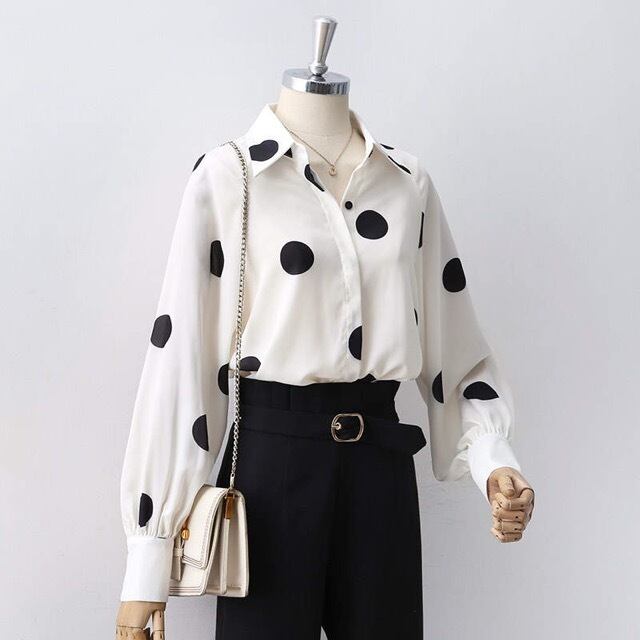 《入荷待ち》 大きいサイズ トップス 長袖 レディース カラーシャツ バルーン袖 個性的 通勤 2020秋 新着 ドット シャツ