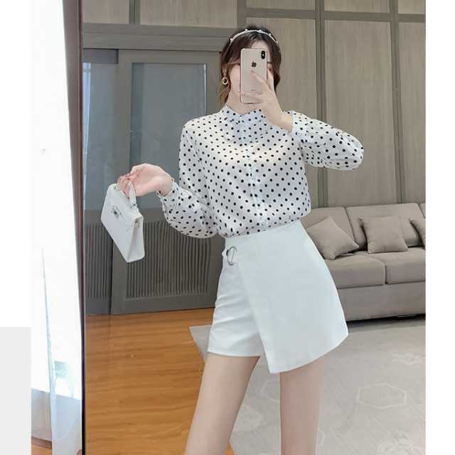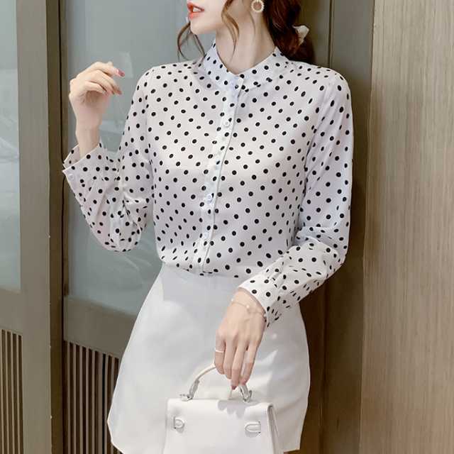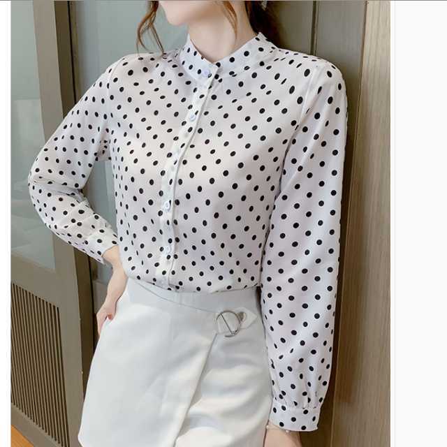 《入荷待ち》大きいサイズ トップス レディース 通勤 長袖 大人きれい 2020秋 新着 ドット シャツ