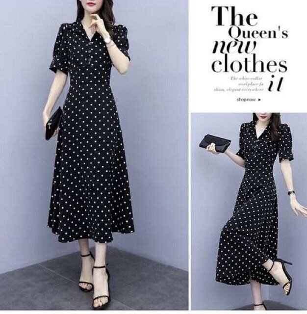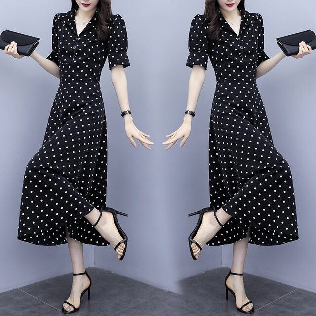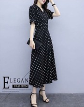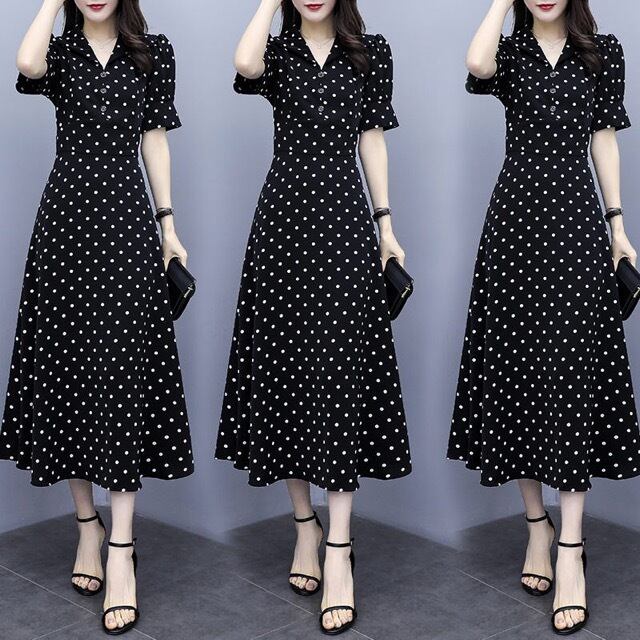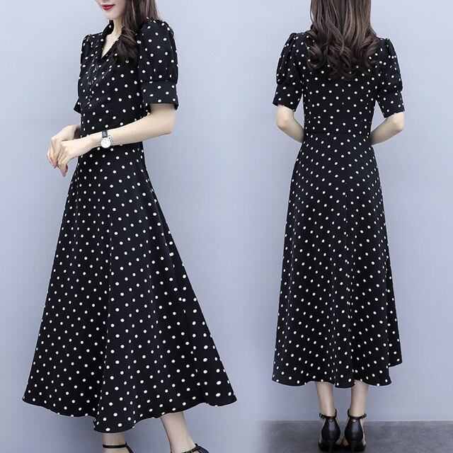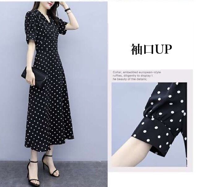大きいサイズ レディース 半袖 A型 フレアー ロング丈 大人可愛い シック 2020秋 新着 ドット ワンピース かわ大