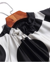 大きなドット柄が可愛いバイカラーのワンピースです。