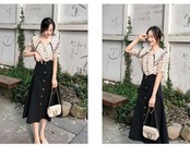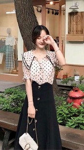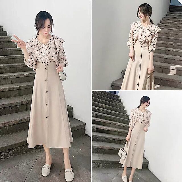 《入荷待ち》大きいサイズ レディース V字ネック 大人きれい 通勤 ノースリーブ ロング丈 ハイウエスト 大人可愛い 2020秋 新着 ドット セットアップ ドレス