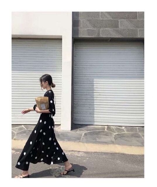 大きいサイズ 7部袖 ロング丈 カジュアル A型 2020秋 新着 ドット ワンピース
