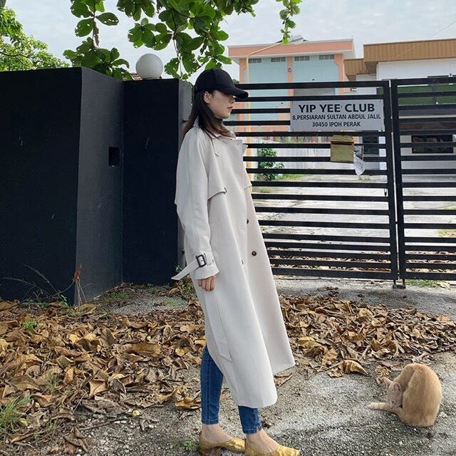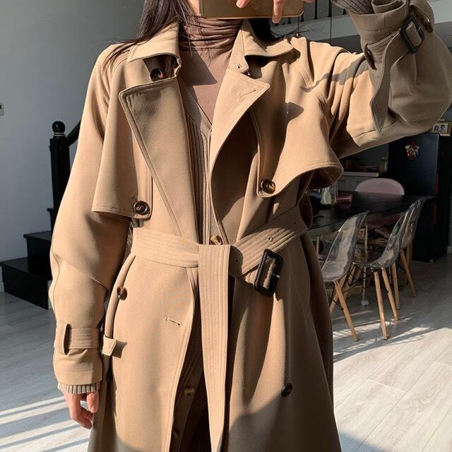 一枚羽織るだけで落ち感たっぷりのトレンチコートです。