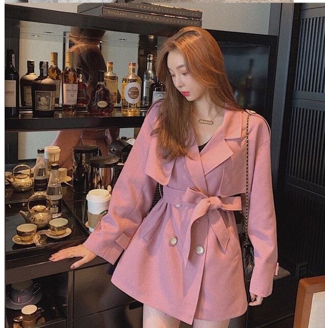 《入荷待ち》レディース アウター ウインドブレーカー カラートレンチ ショート丈 ダブルボタン ダブルブレスト 2020秋 2020冬 新着 トレ定