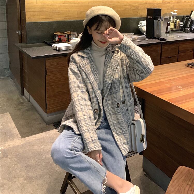 《入荷待ち》レディース アウター ジャケット コート テーラード ショート丈 チェック キルティング お出かけ 通勤 デート オルチャン あったか きれいめ ゆったり 長袖 秋 冬 2020冬 新着