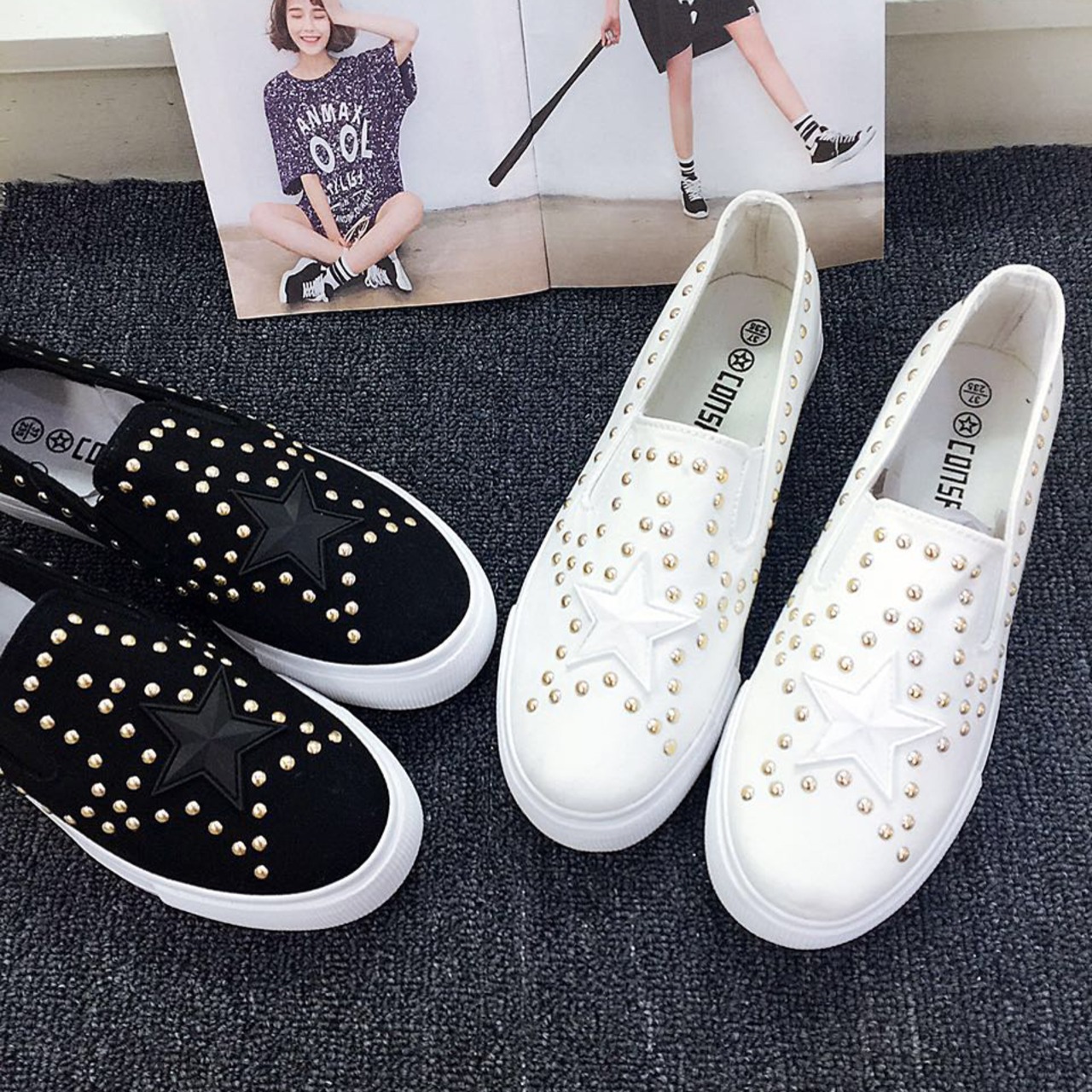 《入荷待ち》全2色 レディース スニーカー スリッポン 厚底 スター 星形 スタッズ カジュアル デイリー 大人可愛い スポーティ 通学 通勤 お出かけ 春 夏 秋 冬 オールシーズン 大きいサイズ