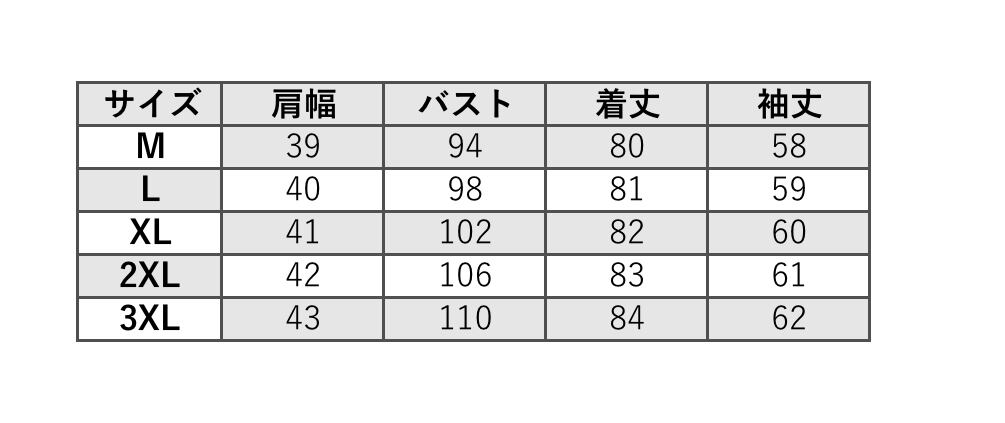 サイズ(cm): M/L/XL/2XL/3XL