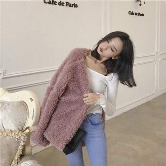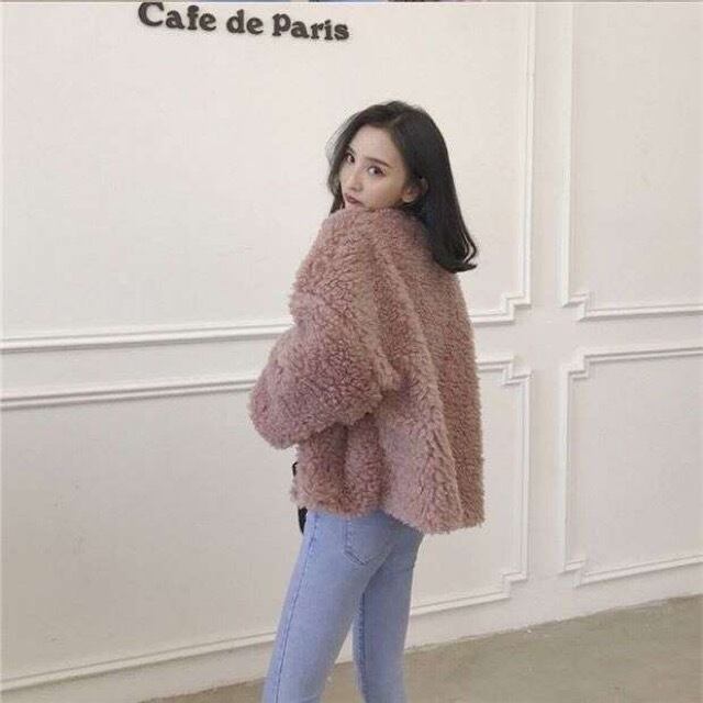 もこもこ素材の可愛い長袖ボアジャケットです。