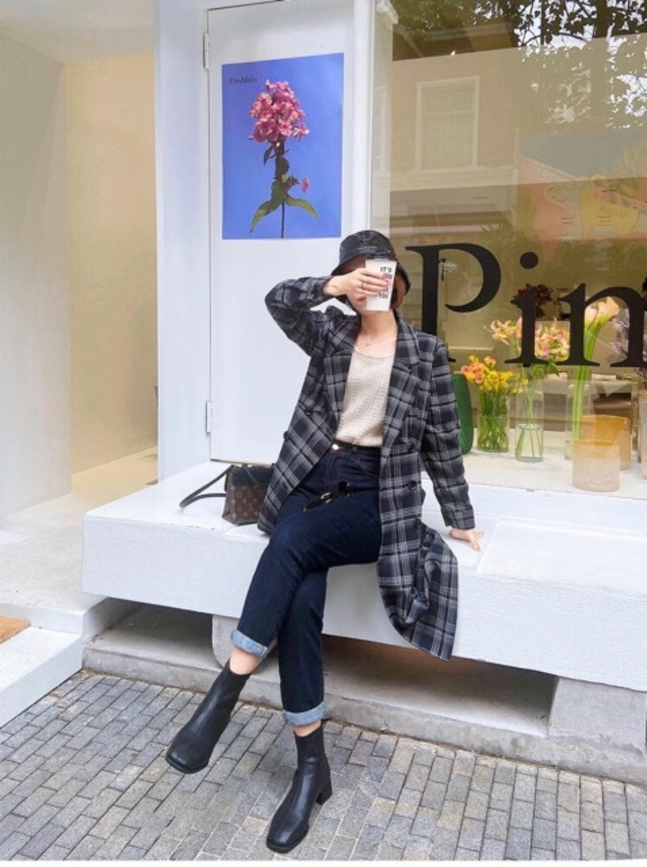おしゃれの定番チェスターコートと女子に人気のチェック柄をミックス。