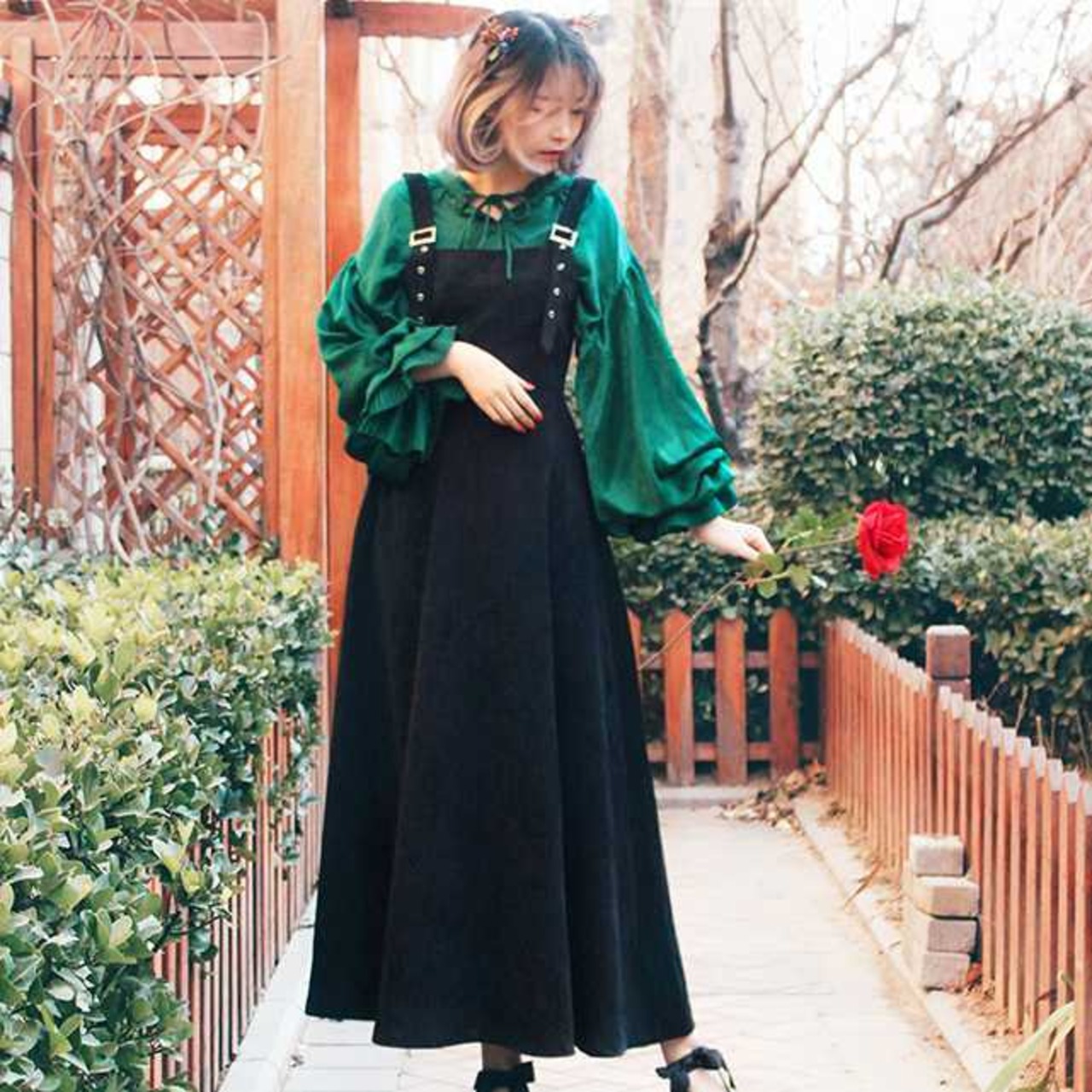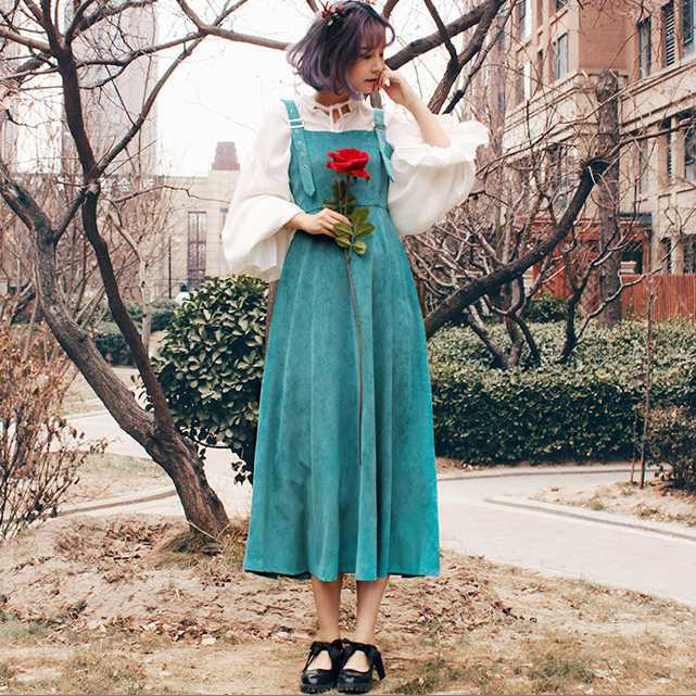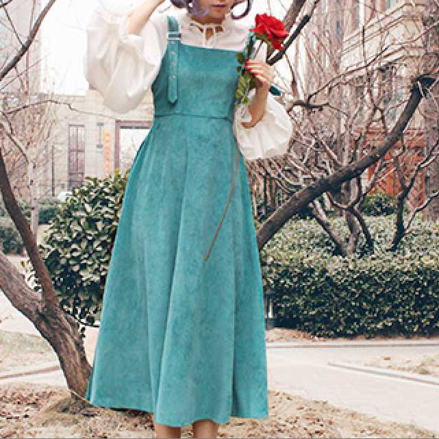 《入荷待ち》 夢かわ ワンピース キュート ロング丈 ジャンパースカート 春 秋 冬 ロングワンピ デート ガーリー レディース ロングワンピ きれいめ ワンピ
