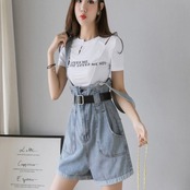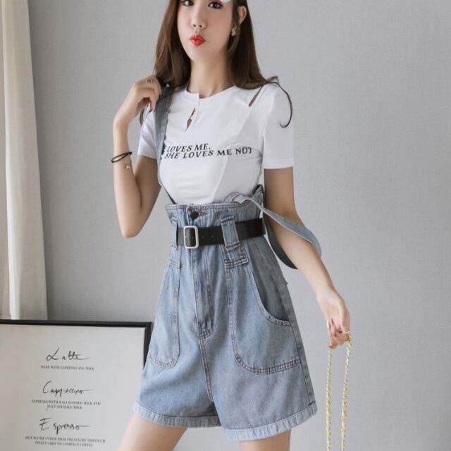 ハイウエストでワイドなショートパンツが足長効果を演出してくれるお洒落なショートパンツサロペット。