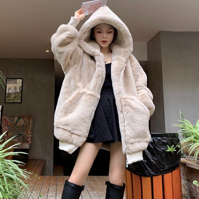 《再入荷》 全3色 レディース アウター もこもこ ファー ボア ブルゾン MA-1 ポケット ファスナー フード 大人可愛い あったかい オーバーサイズ トレ定 アウター 上20 かわ小