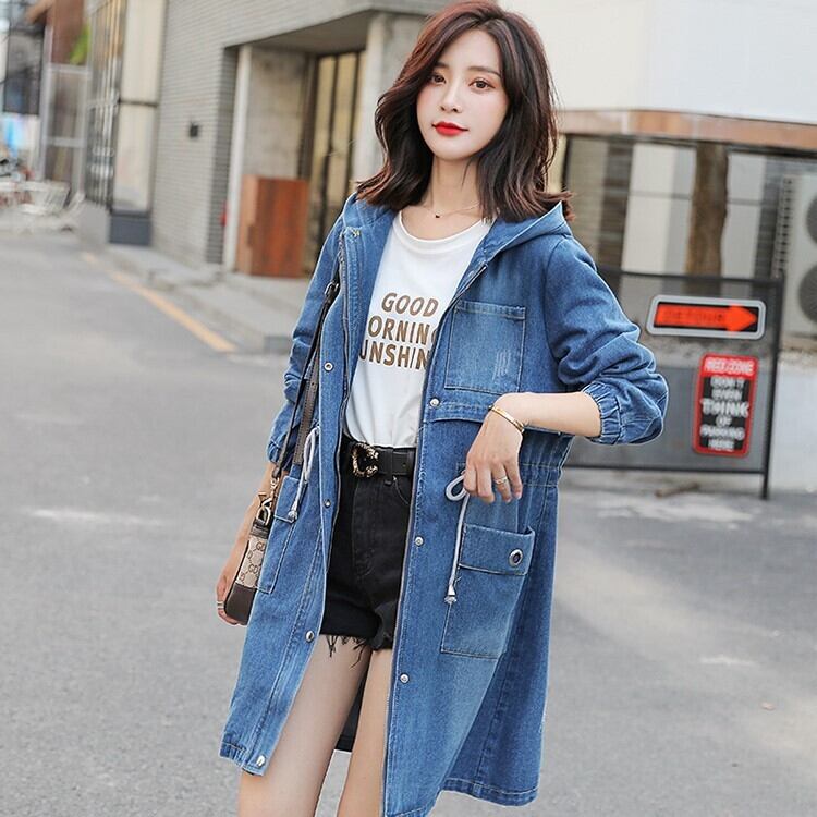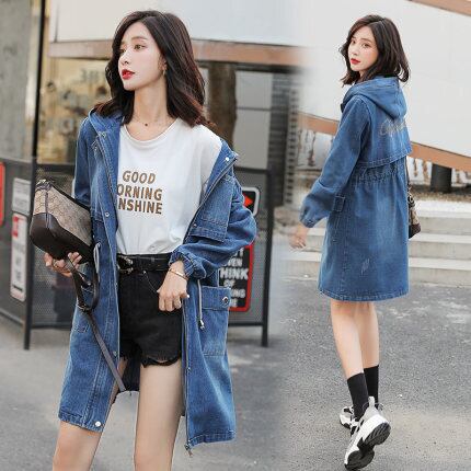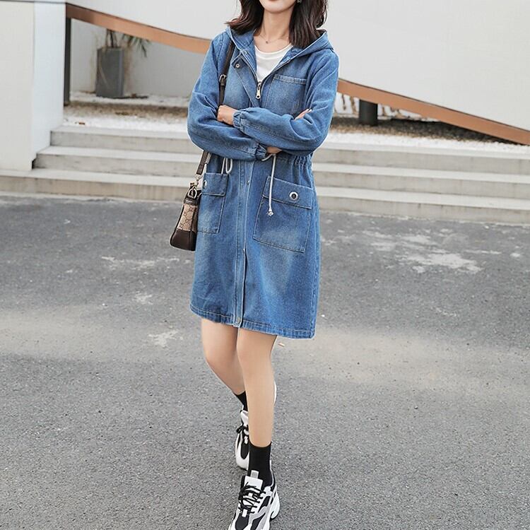 大きいサイズ レディース アウター ジャケット デニム Gジャン マウンテンパーカー フード付 バックプリント ロゴ ミディアム丈 オルチャン カジュアル 羽織 ゆったり デイリー 春 秋 かわ大